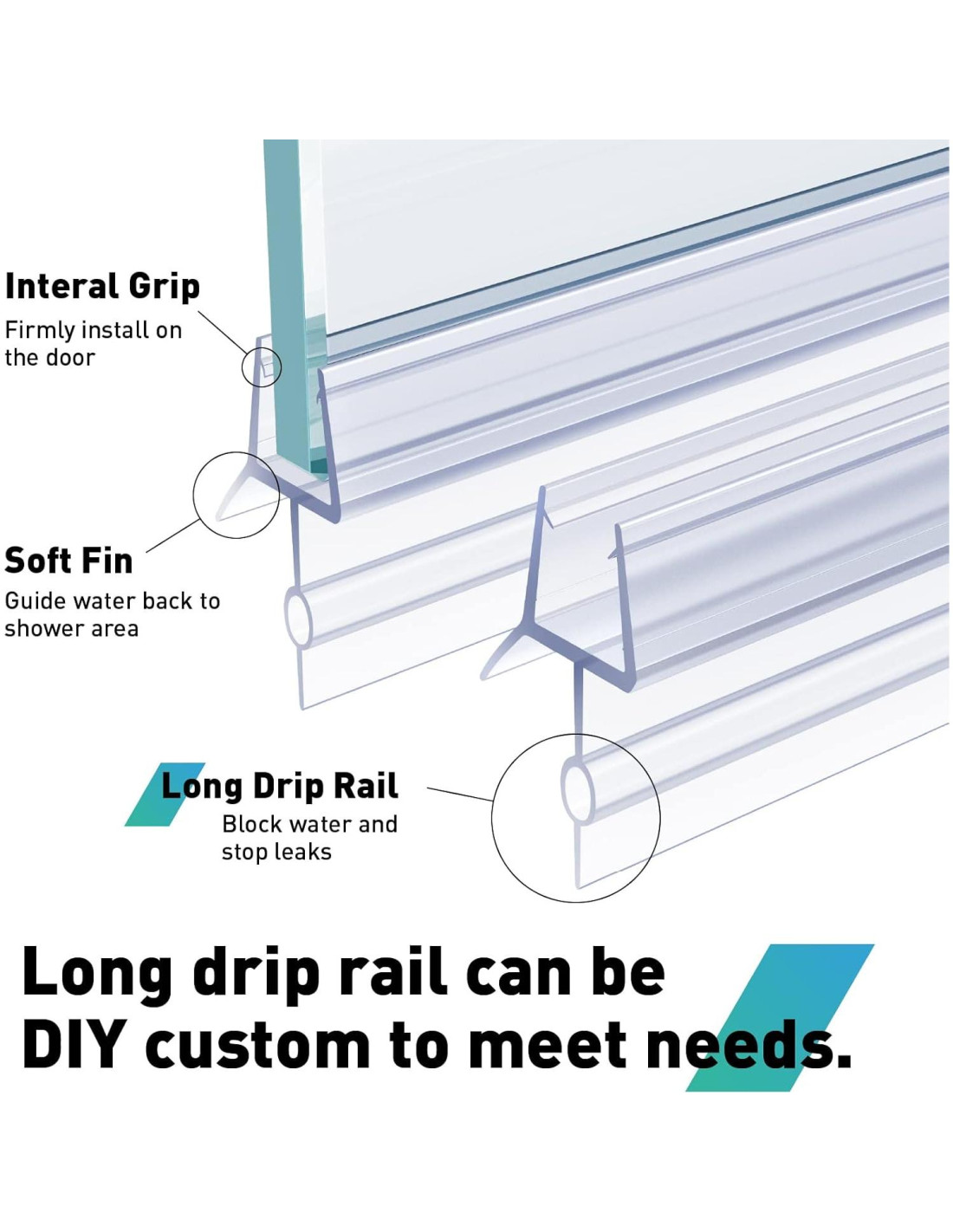 - LO QUE OBTIENES - Un total de 2PCS de sello para puerta de ducha, este sello de ducha con diseño de riel de goteo de 4/5 pulgadas (20mm), sella grandes espacios de puerta, hace que el agua regrese a la ducha, Consejos: El riel de goteo también se puede cortar según la longitud que necesites
