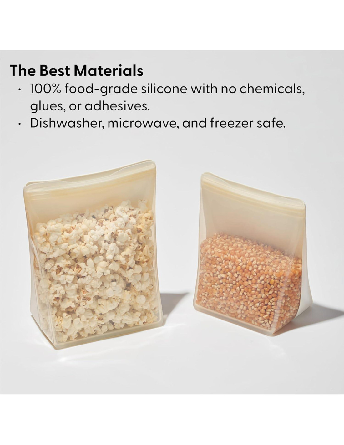 SIN PLÁSTICO: Bolsas de silicona 100% aptas para alimentos sin pegamentos ni adhesivos químicos para una construcción duradera y tranquilidad. Los materiales superan los estándares de alimentos de EE. UU. y son seguros para lavavajillas, microondas y congelador.