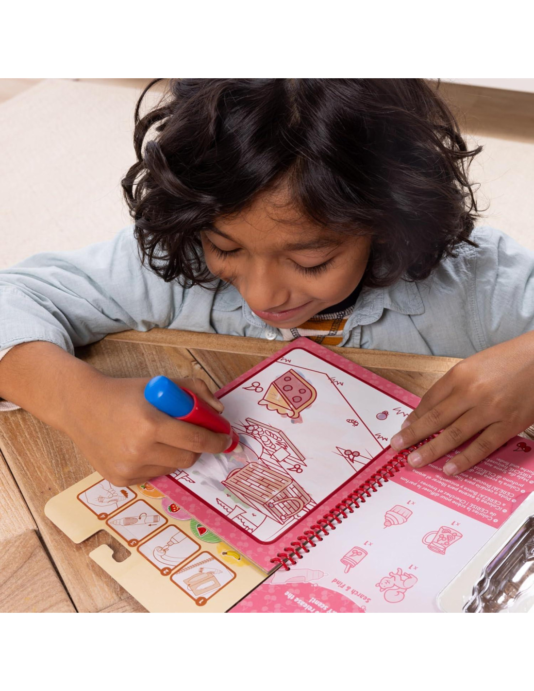 ¡La pintura Water WOW! sin desorden para niños ahora huele doblemente deliciosa! Este emocionante paquete de 2 libros para colorear con pintura con agua incluye cuadernos de colorear de Frutas y Golosinas, cada uno con cinco páginas reutilizables y un bolígrafo de agua recargable. ¡Usa el bolígrafo para colorear cada escena y los aromas, detalles y colores vibrantes aparecen con cada trazo! Deja que la página se seque para borrar las imágenes y colorearla una y otra vez. Estos libros encuadernados en espiral con temática de frutas y golosinas incluyen cinco escenas llenas de aroma para colorear (Frutas: sandía, durazno, cereza, plátano, fresa; Golosinas: canela, chocolate, manzana, miel y palomitas), y actividades de búsqueda y encuentro para cada escena. El bolígrafo de agua de tamaño grueso incluido con cada uno es fácil de sostener y se guarda ordenadamente en la cubierta frontal, haciendo que Water WOW! con aroma sea ideal para libros de actividades de viaje y juguetes de viaje para niños!