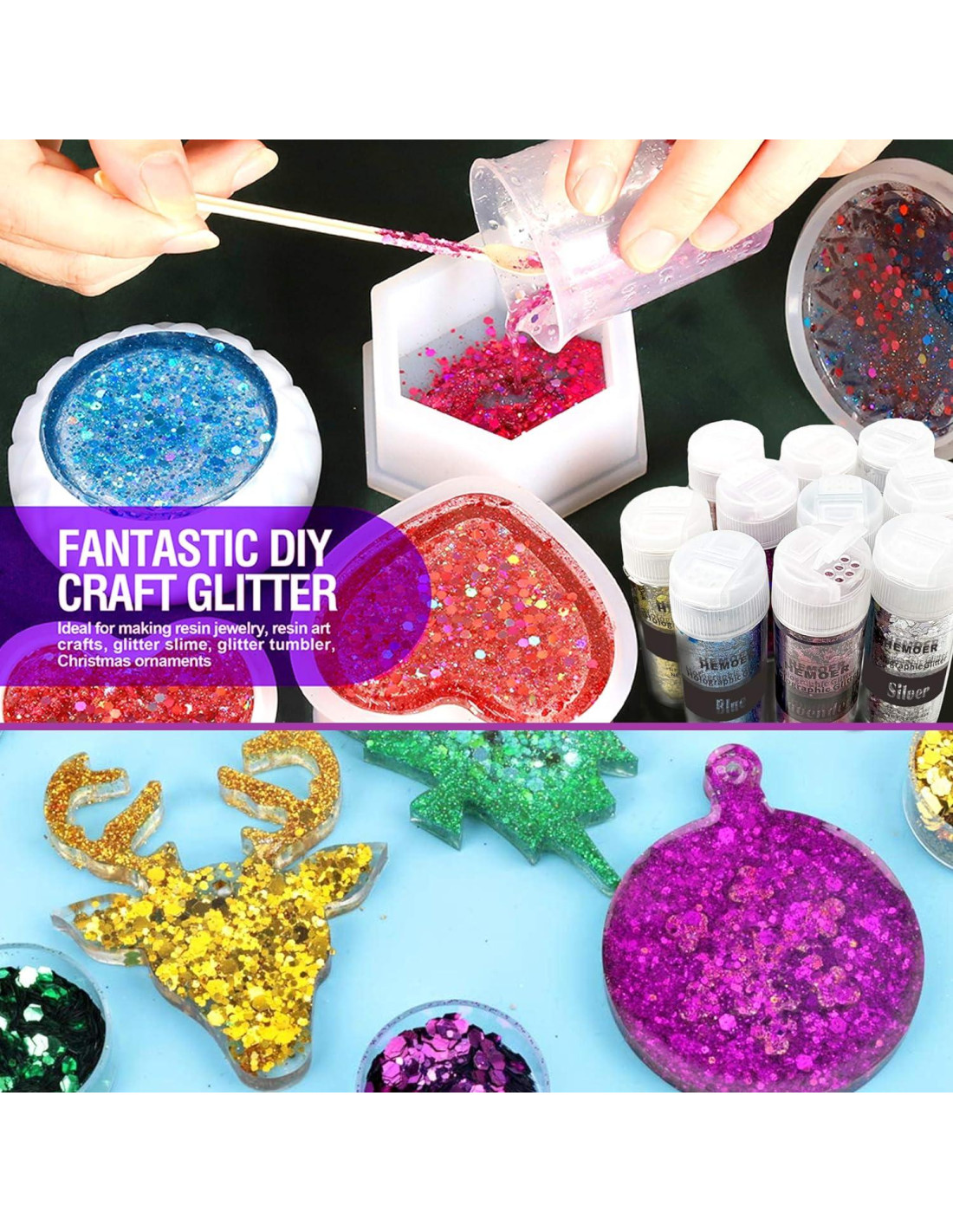 - Usos Ilimitados: Aporta brillo y destello a cualquier proyecto, como hacer joyería de resina, vaso de epóxido, slime, collages, postales, uñas, tarjetas de scrapbooking, decoraciones navideñas, ropa personalizada, proyectos escolares, adecuado para festivales, decoraciones de baile, y más.