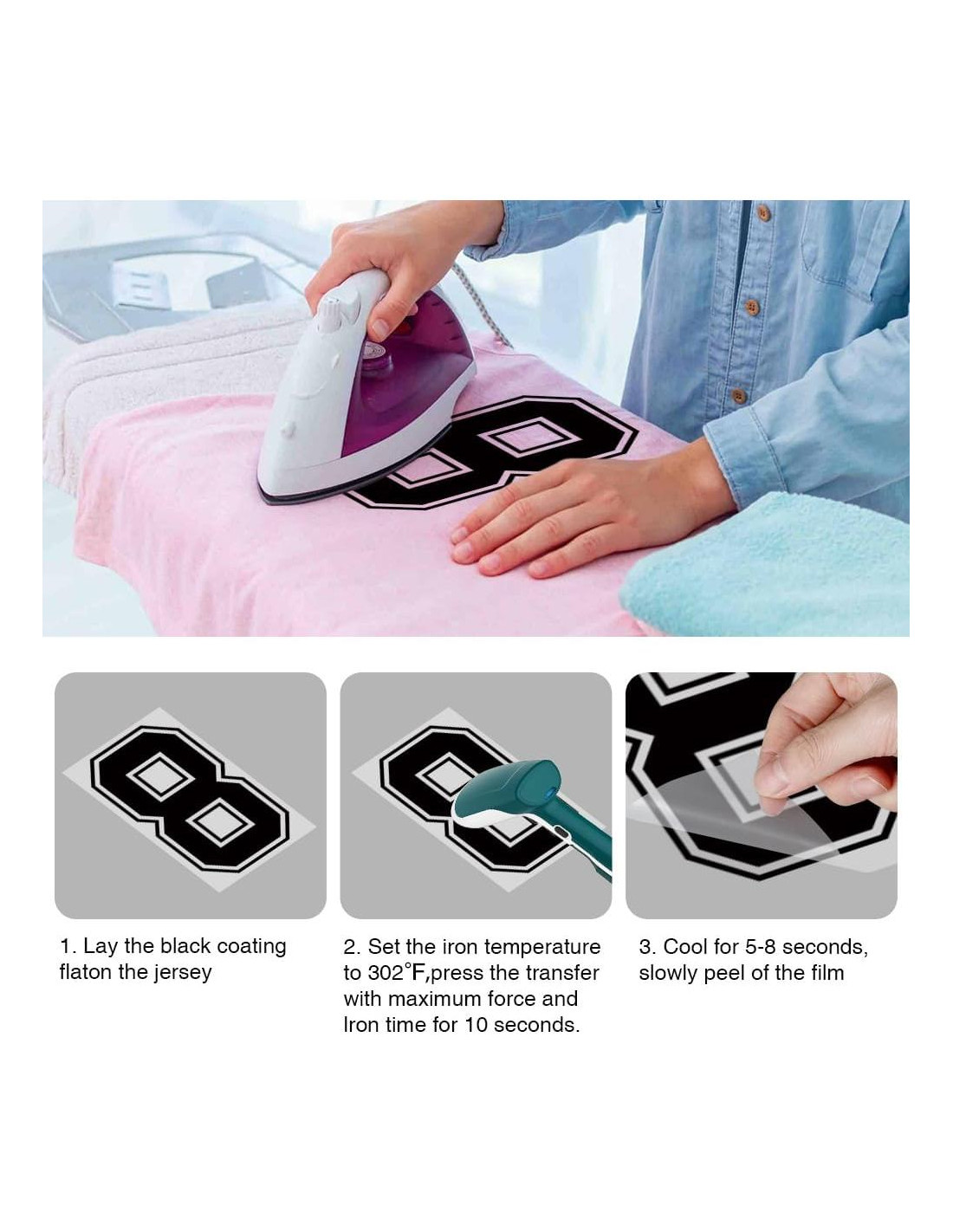 - [Materiales de alta calidad] Nuestros números de transferencia de calor para jerseys utilizan materias primas de alta calidad. Los números están adheridos a la película de plástico PET, y la parte posterior utiliza un adhesivo termofusible premium. Cuando se usa, el adhesivo termofusible se calienta con la plancha o la máquina de transferencia de calor y se derrite, permitiendo que el número se adhiera a la prenda.