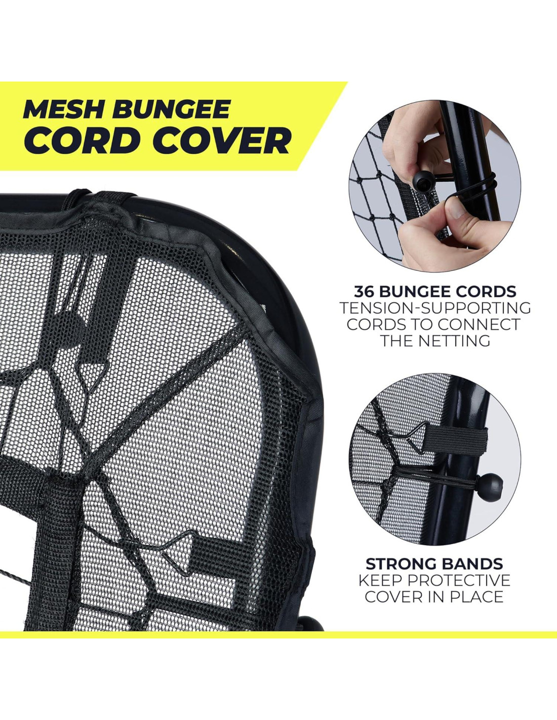 - CORDONES PROTEGIDOS - La red se engancha al marco del reboteador con 36 cuerdas elásticas para una tensión óptima. Una cubierta de malla protege los cordones de ser golpeados, haciendo que nuestro equipo de lacrosse sea extra duradero.