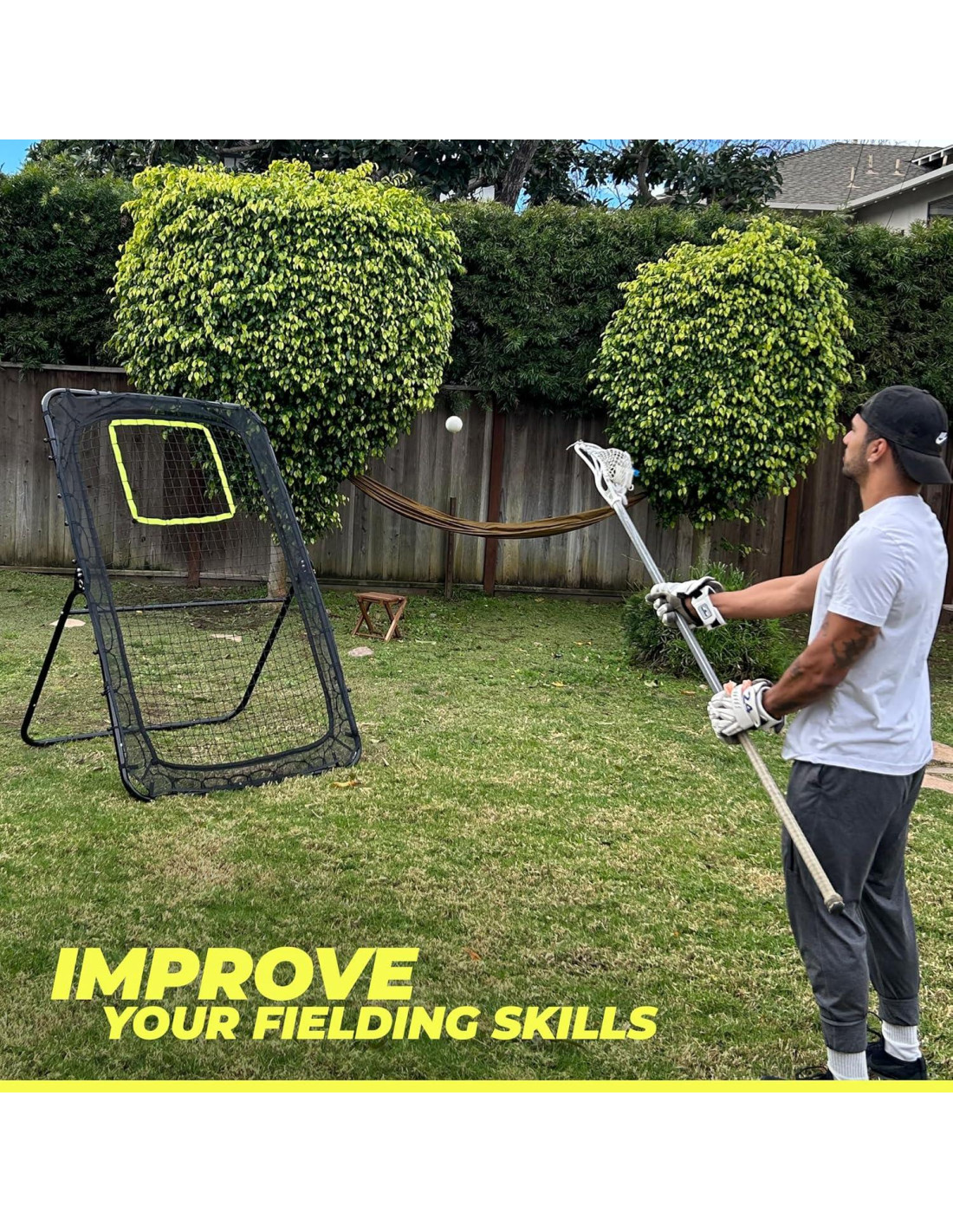 - MATERIALES RESILIENTES - Con tubos de metal de 1.25" (3.18 cm) y 4 estacas de acero para anclaje al suelo, nuestro marco de rebote de LAX/baloncesto de 48"x73" (121.92 cm x 185.42 cm) es robusto y estable. La red de malla reforzada de 45 capas está hecha de nylon extra grueso, tensa y fuerte, y devuelve la pelota a velocidad de juego.