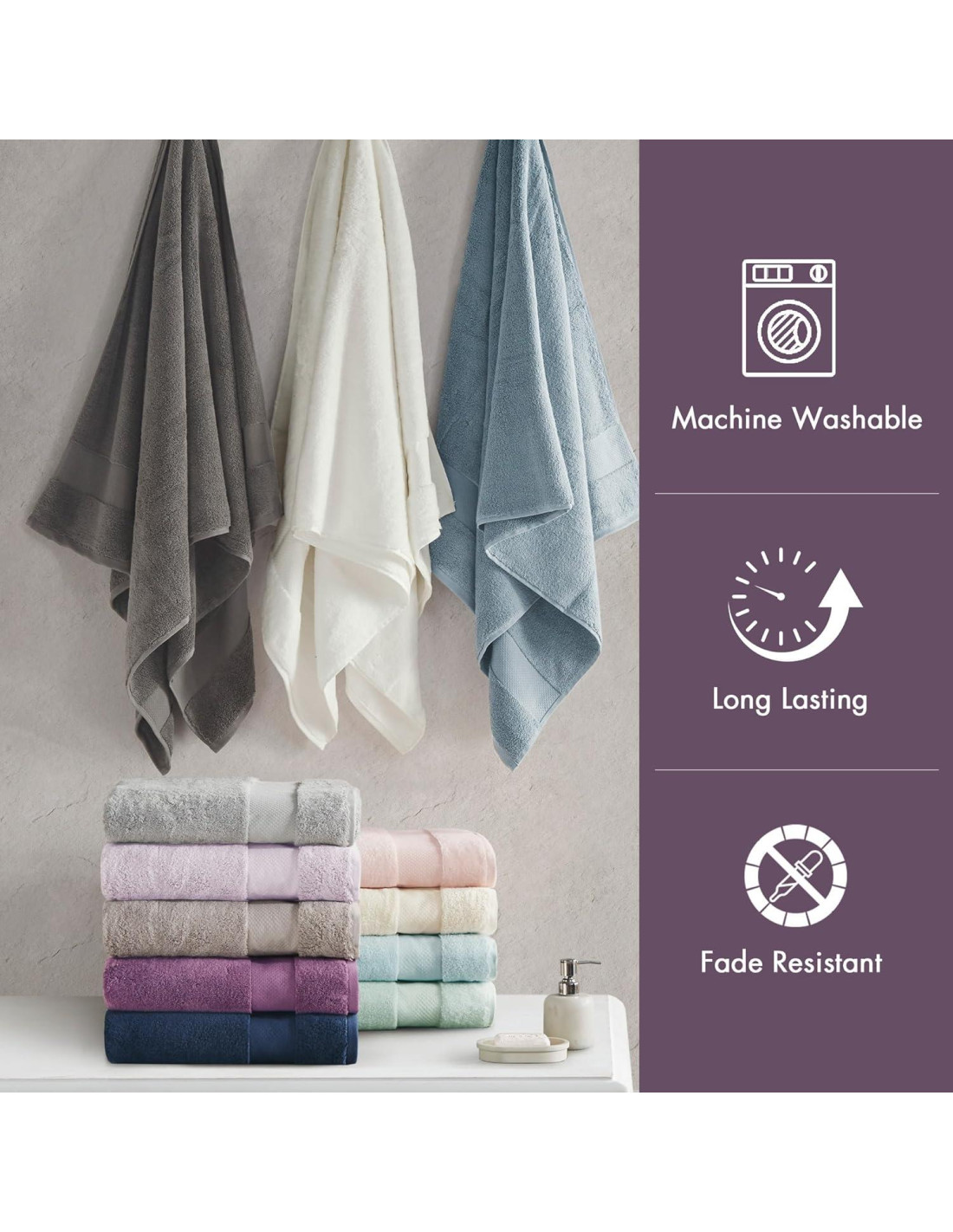 - Cuidado: Lavable a máquina, para mantener la calidad y el rendimiento de tus toallas, evita el uso de suavizantes de telas y hojas para secar. Secar a baja temperatura, retirar de inmediato. No planchar. Antes de usar, simplemente sacude las toallas para restaurar el esponjamiento y la pila.