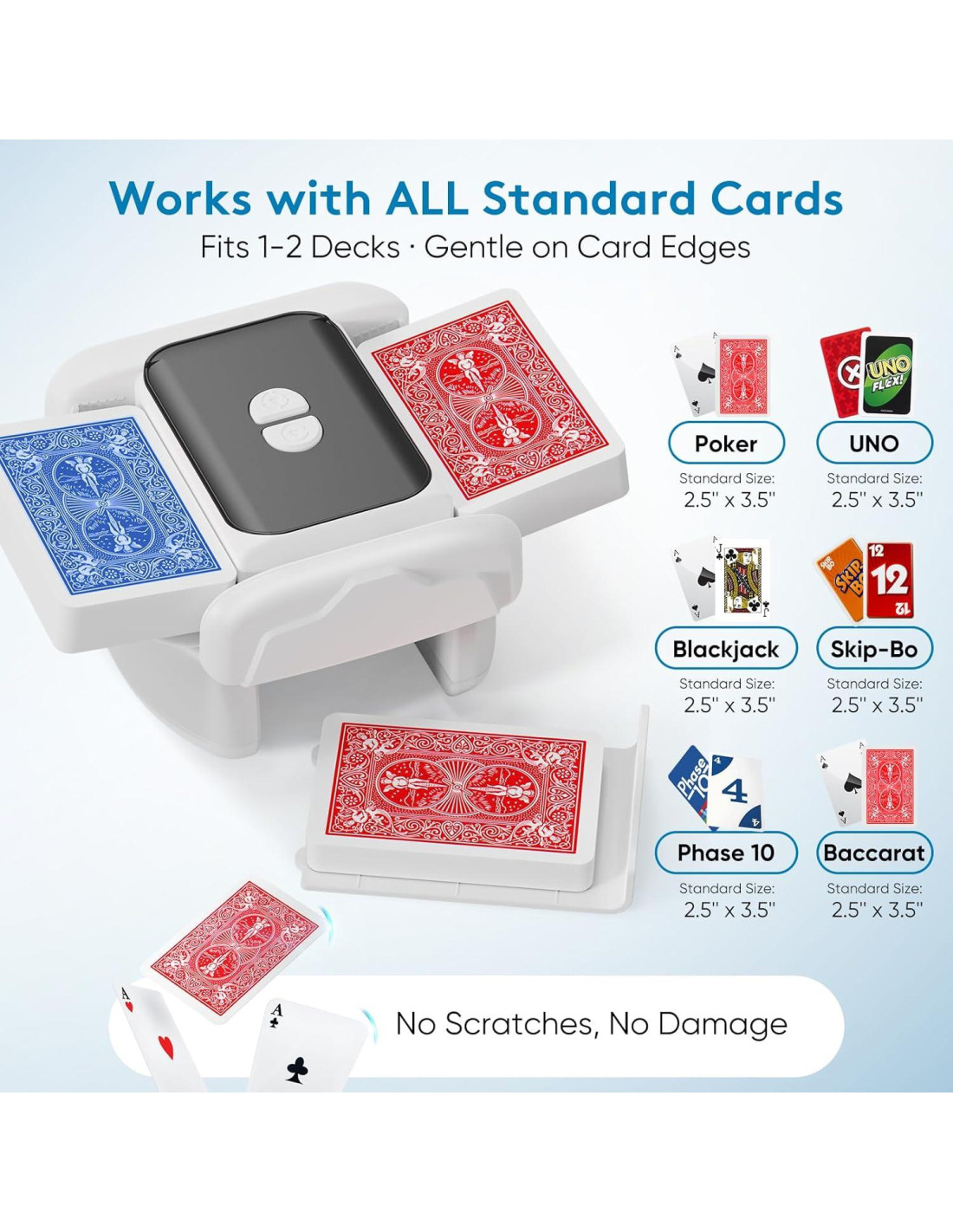 - Barajado Sin Manos con Un Solo Toque: ¡El barajador automático de cartas comienza con 1 toque! Sensores inteligentes detectan cartas se detiene automáticamente cuando termina. *No más mantener botones como en los modelos de los 90* - perfecto para personas con artritis.