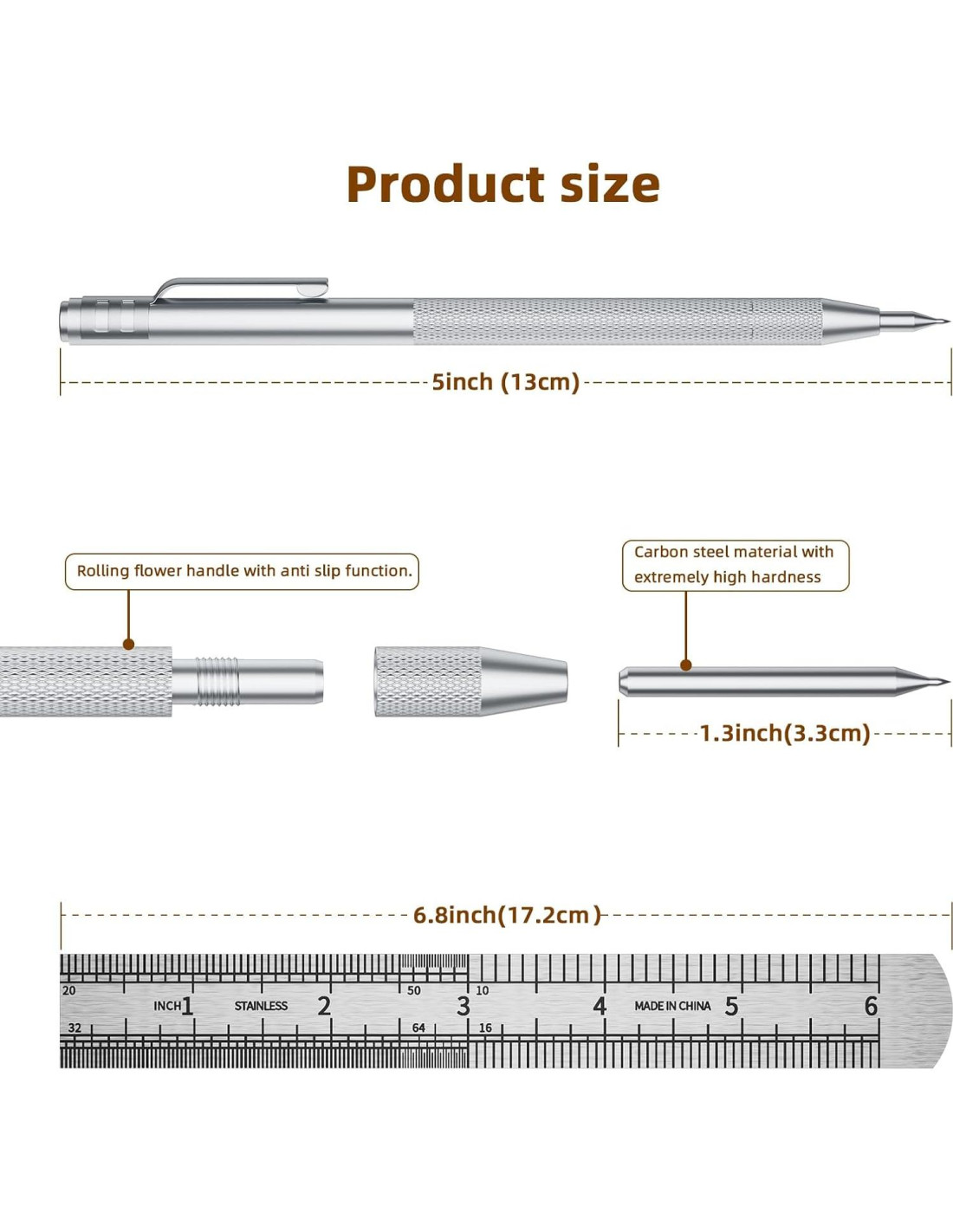 - [Construcción de Material Premium] Las puntas de carburo de tungsteno del estilete metálico ofrecen alta dureza y resistencia al desgaste para marcas claras en metal, vidrio, cerámica, madera, mármol y conchas. Los cuerpos de aluminio resisten la corrosión de entornos de taller o residuos de materiales.