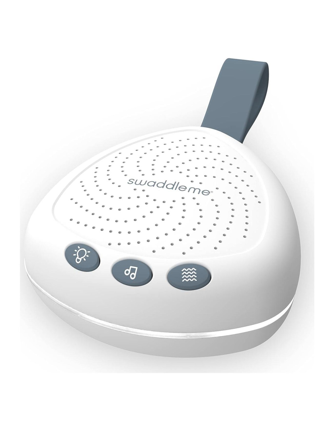 La máquina de sonido portátil SwaddleMe by Ingenuity Soothe & Vibe está diseñada para ayudar a que tu pequeño se duerma pacíficamente tanto en casa como en movimiento. Usa el lazo duradero para sujetarlo a tu bolso de pañales o cochecito para un confort constante dondequiera que tú y tu bebé vayan. Esta máquina de sonido compacta ofrece cinco canciones de cuna y sonidos relajantes, junto con una función de vibración de dos velocidades que imita el sonido de tu latido para el máximo confort calmante. Una luz LED emite un suave resplandor desde el centro del Soothe & Vibe, convirtiéndolo en una pieza esencial del equipo para bebés que no querrás dejar en casa. El diseño moderno incluye un conveniente cable USB C para una fácil recarga, así tu bebé nunca tendrá que estar sin las comodidades del hogar mientras te embarcas en tu próxima aventura.