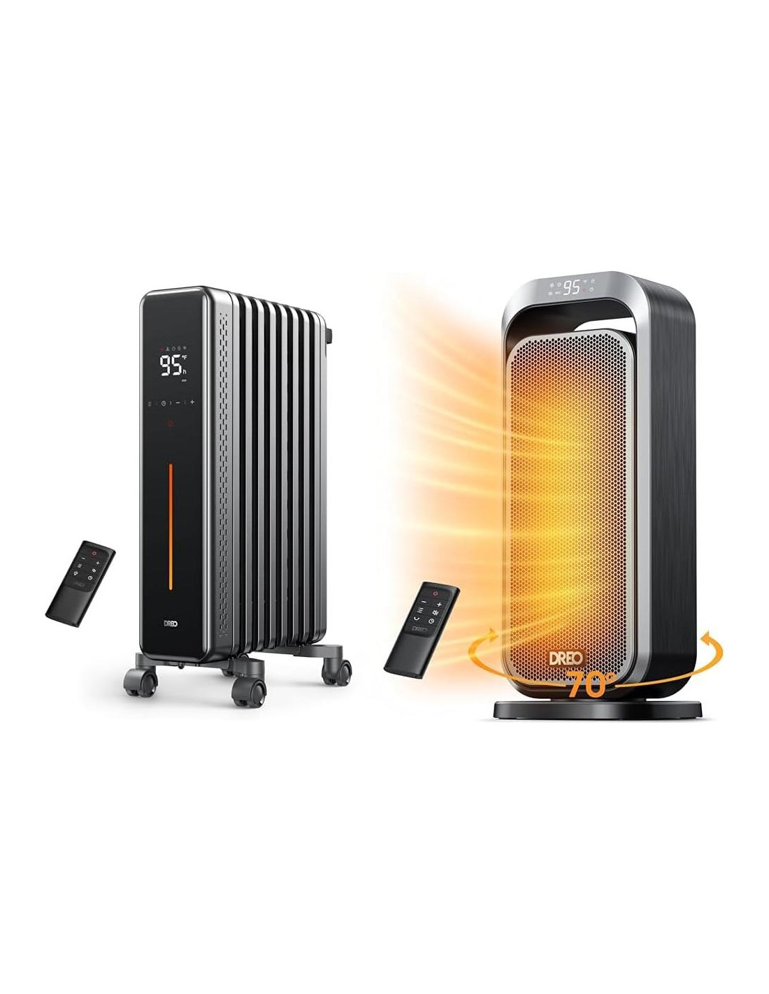 Este paquete incluye dos calefactores eléctricos de Dreo para mantener su hogar cálido y cómodo. El radiador de aceite proporciona calefacción eficiente para toda la habitación con sus 8 aletas en forma de M para una amplia distribución del calor en espacios grandes. Ofrece 4 modos de hasta 1500W junto con un control de temperatura preciso entre 5-35C. El calefactor de cerámica portátil también proporciona calefacción rápida de 1500W y tiene una función de oscilación de 70 para distribuir el calor a cada rincón. Ambos calefactores tienen características de seguridad como protección contra vuelcos y protección contra sobrecalentamiento. El calefactor de radiador asegura un funcionamiento de bajo ruido con sus cambios en el modo de calefacción silenciosa y función de mudo. Mientras que el calefactor de espacio opera a un susurro silencioso de 32dB con su motor sin escobillas. Juntos, estos dos calefactores se complementan para calentar habitaciones pequeñas o grandes. El calefactor de radiador proporciona calefacción para toda la habitación manteniendo uniformemente la temperatura. Y el calefactor de espacio se enfoca en la calefacción dirigida con su oscilación y portabilidad para llevar el calor donde lo necesite. Aseguran una calefacción segura y eficiente para un confort superior.