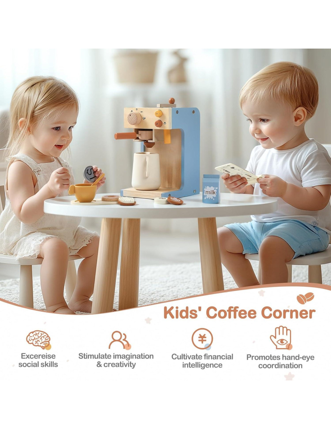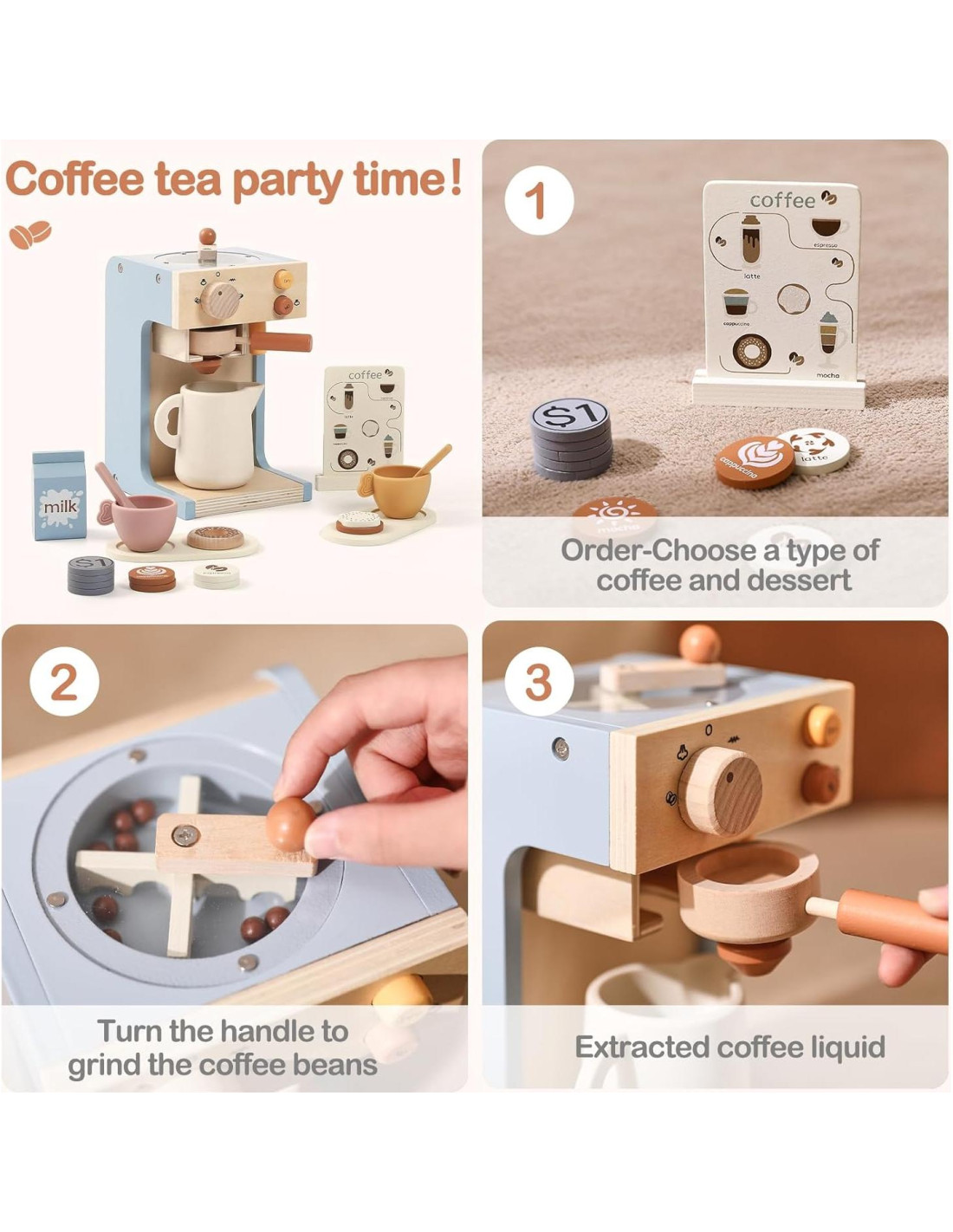 - EERKEOD Juguete Cafetera para Niños Juego de Cafetera de Madera para Niños Accesorios de Cocina para Jugar Regalo para Niñas y Niños
