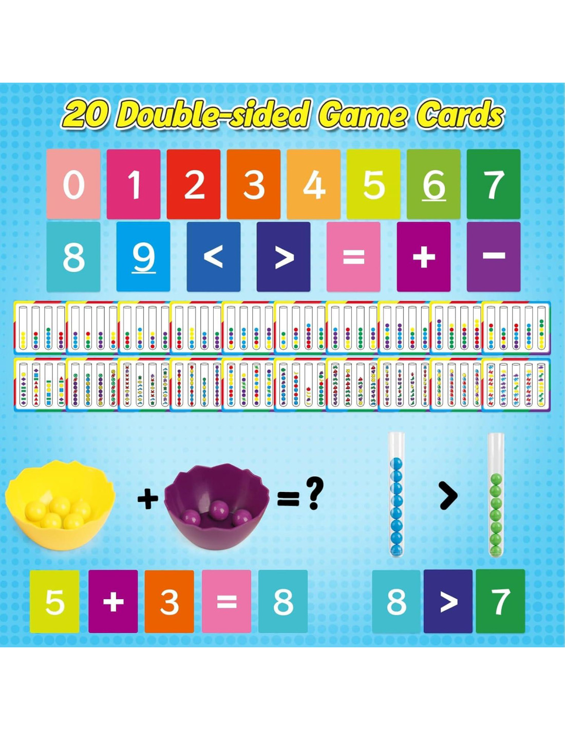- [Conjunto de valor] Para cualquier hogar escolar o aula, este juguete es una gran adición a la enseñanza de manipulación matemática. El conjunto de clasificación viene en un paquete de valor con 50 cuentas, 5 tazas de clasificación, 5 tubos de ensayo, 1 herramienta de agarre de lápiz, 1 base de tubo de ensayo, además de 1 cuchara y 20 tarjetas de desafío.