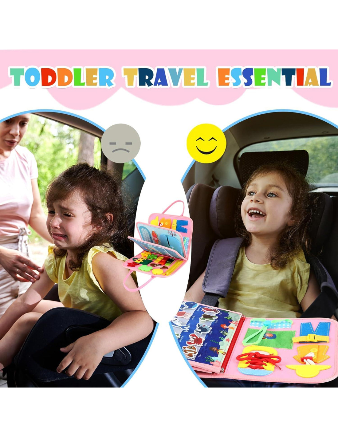 - Tu pacificador viajero - Imprescindible para viajes con niños: Perfecto para viajes, momentos de tranquilidad y en cualquier lugar intermedio. Rápidamente se convierte en un favorito para los pequeños de 1-3 años, este tablero y libro ocupado está lleno de características en un diseño de fieltro ligero. Es fácil de empacar, lo que lo hace perfecto para actividades en movimiento, ya sea que estés en la carretera, volando o simplemente necesites mantenerlos ocupados durante momentos tranquilos como visitas al médico o en la iglesia.