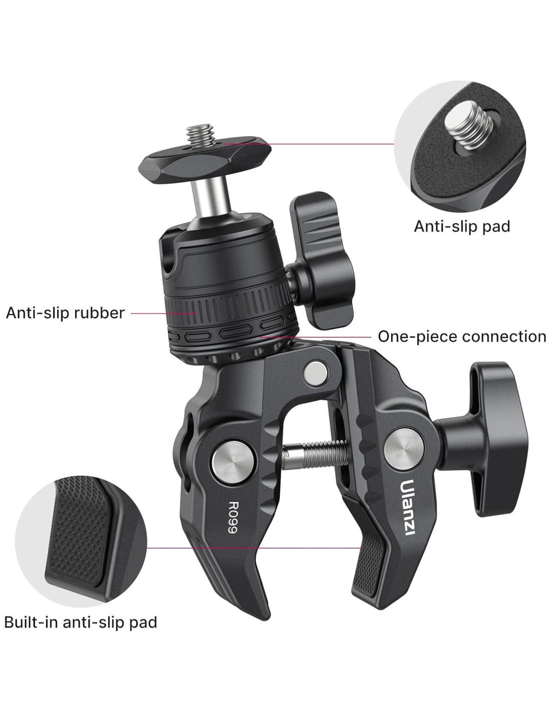 - Lo que obtienes: Super Clamp con cabezal de bola*1, adaptador de Gopro*1.