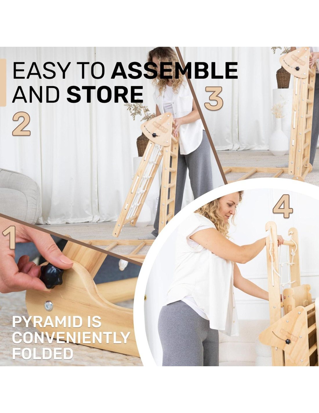 - Hecho con cuidado: El juguete triángulo pikler para bebés y niños pequeños presenta diferentes niveles de inclinación para promover habilidades. Hecho de madera real, bien pulido y barnizado para la escalada de bebés.