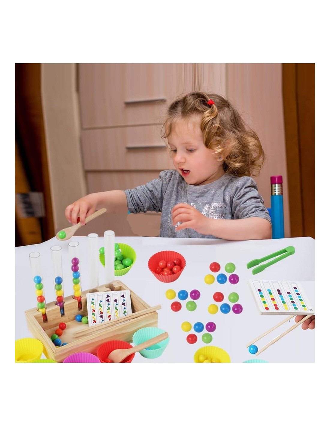 - Juguetes de Clasificación y Color: Este juguete montessori ayudará a tu pequeño a comenzar a reconocer colores contando y clasificando las coloridas bolas. Es ideal para proporcionar un inicio temprano en el desarrollo STEM de tu hijo