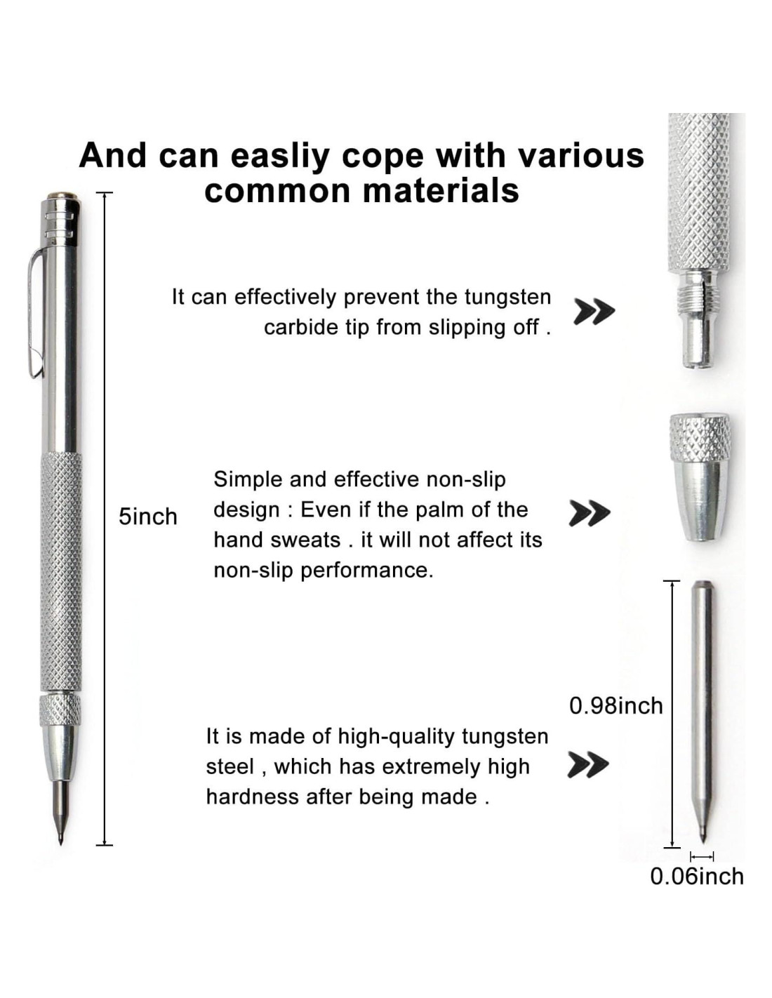 - Materiales duraderos - El cuerpo del bolígrafo de grabado está hecho de aluminio de alta calidad, y la punta del bolígrafo está hecha de carburo de tungsteno de alta calidad, afilada, de alta dureza y fuerte resistencia al desgaste.
