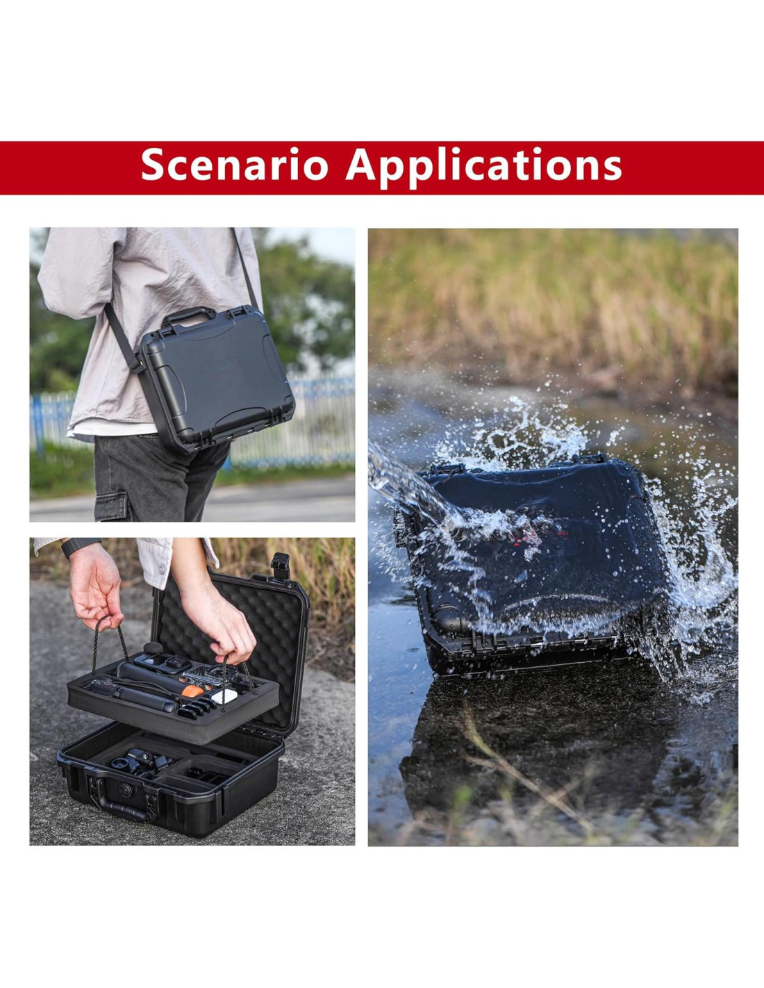 - Materiales de Alta Calidad: Exterior de PP duradero, resistente al desgaste, presión, caídas y colisiones. Impermeable y a prueba de polvo IP67. Interior de EVA personalizado con almohadilla de esponja elástica para total protección.