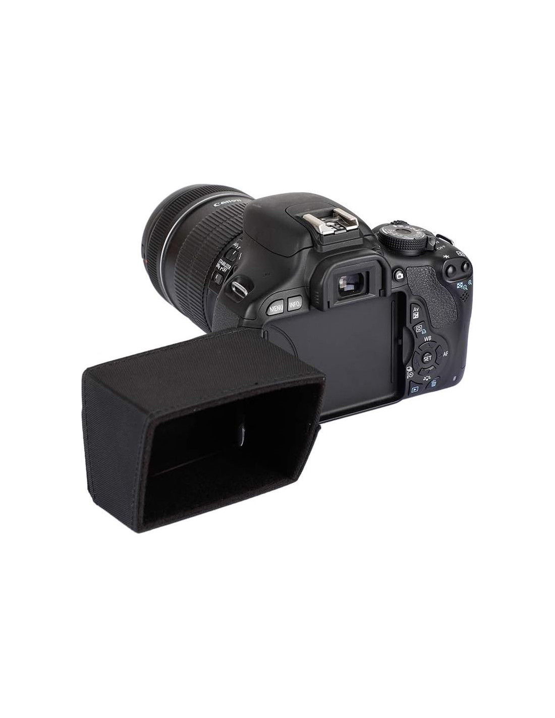 Esta Capota de Sol LCD CAMVATE es un ajuste perfecto para cámaras o videocámaras con una pantalla LCD plegable de 3". La cobertura de cuatro lados reducirá efectivamente el deslumbramiento y las sombras causadas por la luz solar directa en la pantalla LCD, y te ofrecerá una pantalla clara y legible para grabar y revisar tu video e imágenes fijas. Funcionará en cámaras DSLR / videocámaras con una pantalla plegable de 3" incluyendo (pero no limitado a): Compatibilidad con Cámaras DSLR: Canon: EOS R / M50 / 6D Mark / 80D / 77D / 70D / 800D / 760D / 750D / 600D / 200D / PowerShot G1X Panasonic: GH5 / GH5S / G9 Nikon: D5200 / COOLPIX P7800 / COOLPIX P1000 Pentax: K-70 / K-S2, etc. Compatibilidad con Videocámaras: Sony: HDR-PJ510E / DCR-SR68 / DCR-SR47E / HDR-CX240E / DCR-SR200 Canon: Vixia HF R500 / Vixia HF R42 / Vixia HF R40 / HF R400 / Vixia HF R50 / Vixia HF R52 / Legria HF R806 / Legria HF R86 / Legria HF G26, etc. Peso Neto: 41.7 g. Paquete Incluido: 1 x Capota de Sol LCD para Pantalla Plegable de 3".