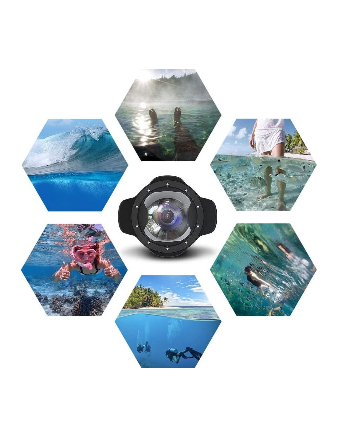 - Con el Puerto de Domo Gran Angular, se aplica para tomar video o imagen medio sobre el agua medio bajo el agua muy fácilmente, y su ángulo será mucho mayor que el de la lente normal