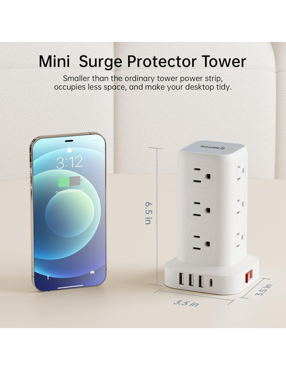 - Diseño de Torre que Ahorra Espacio: El diseño compacto de torre de 4 lados ayuda a organizar y desordenar tu espacio de trabajo, ahorrando valioso espacio en el escritorio. Con 4 patas de goma en la parte inferior, el cable de extensión de 6.5 pies (1.98 m) se mantiene firmemente en su lugar sin deslizarse, creando un entorno ordenado y eficiente.