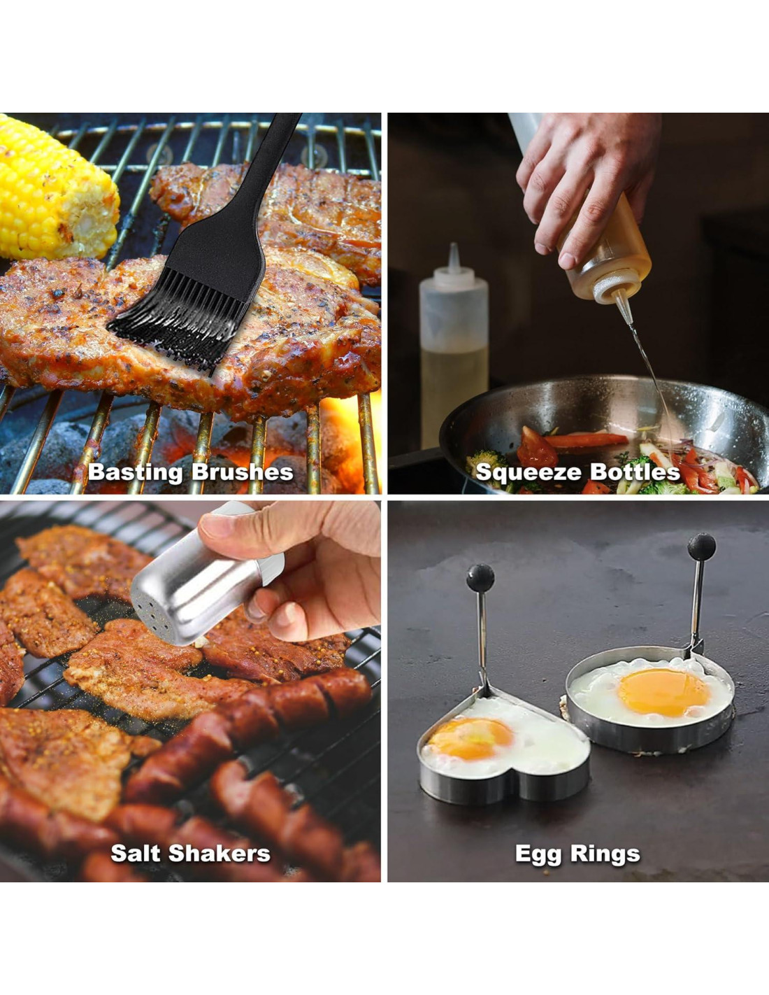 - Herramientas Versátiles para Necesidades de Parrilla - Diseñadas para precisión en voltear hamburguesas, hacer panqueques e incluso cortar pan, estos accesorios para plancha son la opción ideal para cada entusiasta culinario, desde el novato en barbacoas hasta el experto en parrillas. Abraza el espectro completo de la parrilla y la cocina con herramientas de parrilla que te empoderan para dominar cada desafío culinario con facilidad.