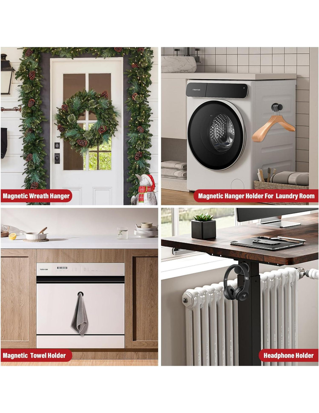 - ALTA CALIDAD El material de los ganchos magnéticos de alta resistencia son imanes de tierras raras, que tienen una excelente capacidad magnética. Los ganchos magnéticos pueden atraer y fijar varios objetos metálicos, más duraderos y de larga duración que otros materiales.