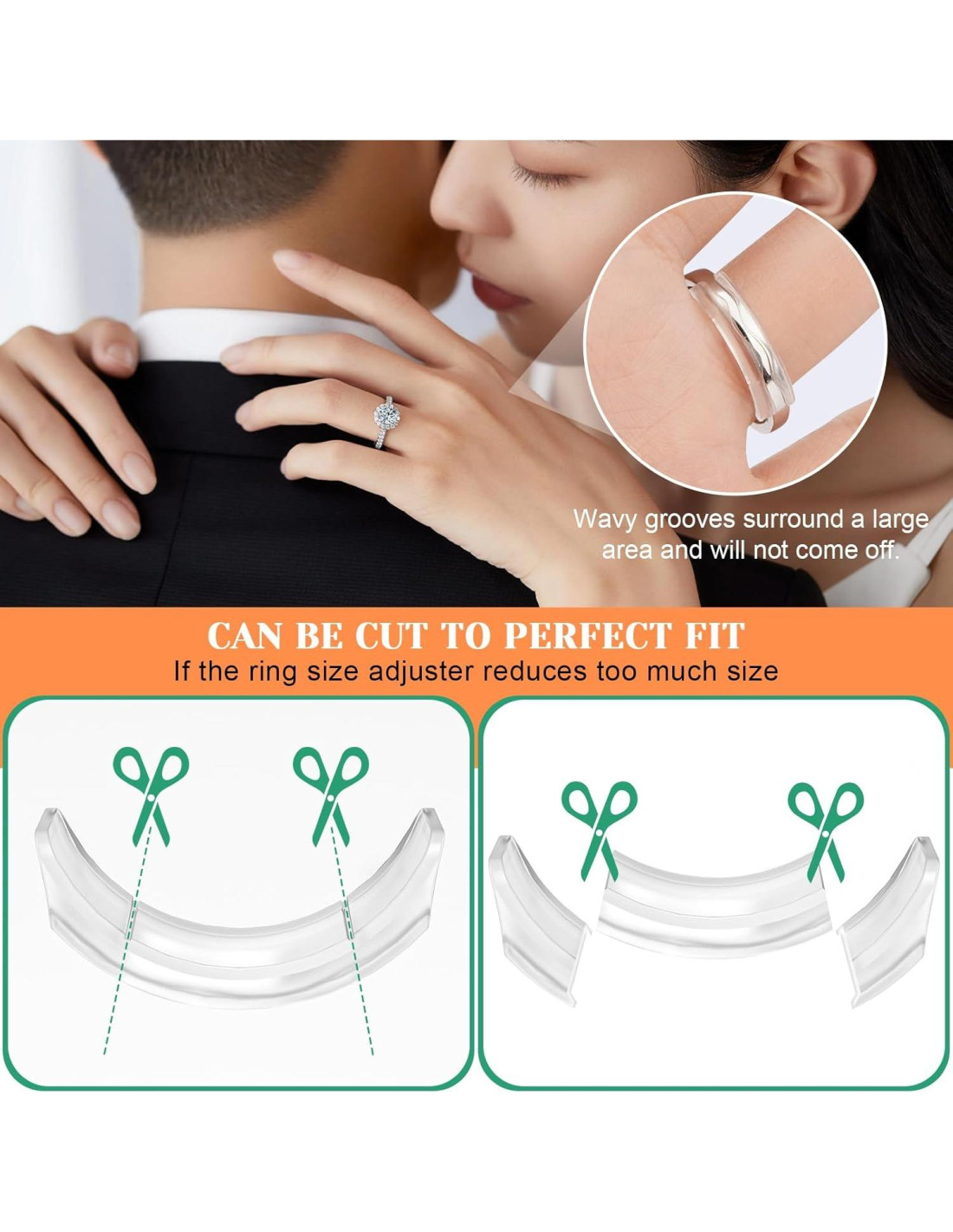 - Diseño Invisible, Elegante y Discreto - El diseño transparente de los ajustadores de anillo se mezcla perfectamente con tu anillo, haciéndolo prácticamente invisible. Mantiene la belleza y el estilo de tu anillo mientras asegura un ajuste cómodo y seguro.