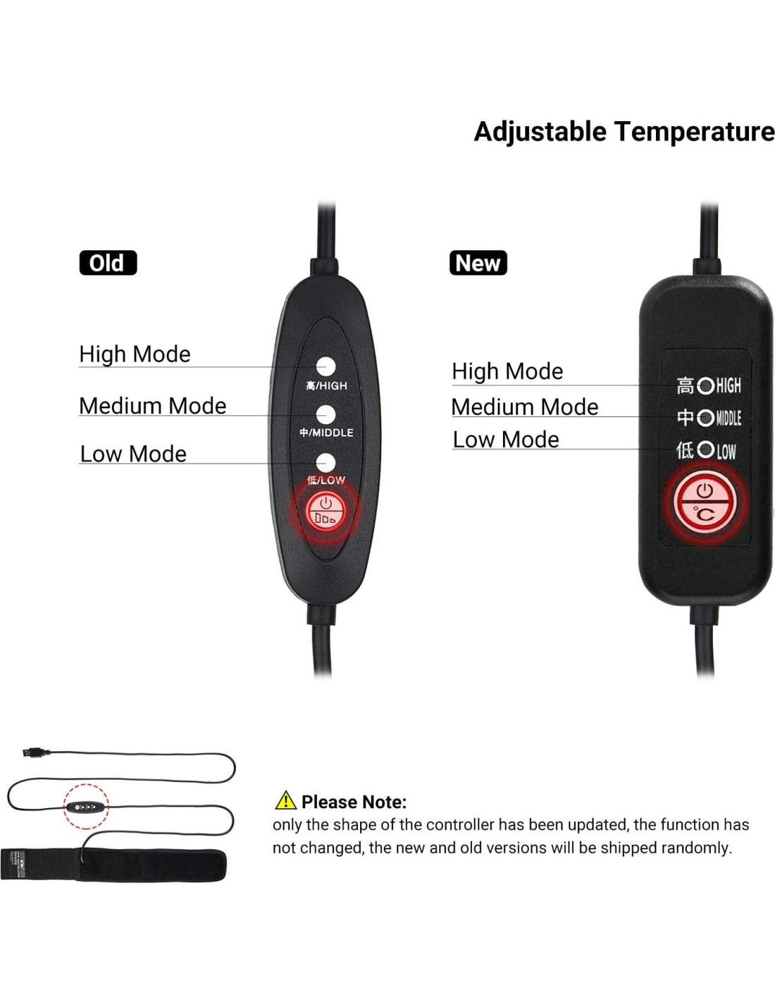 - Temperatura Ajustable: El producto está equipado con un regulador de temperatura de 1.5m con modos bajo, medio y alto. El diseño del cable de baja temperatura puede soportar temperaturas tan bajas como -40C, y no se congelará ni romperá en un ambiente frío durante mucho tiempo.