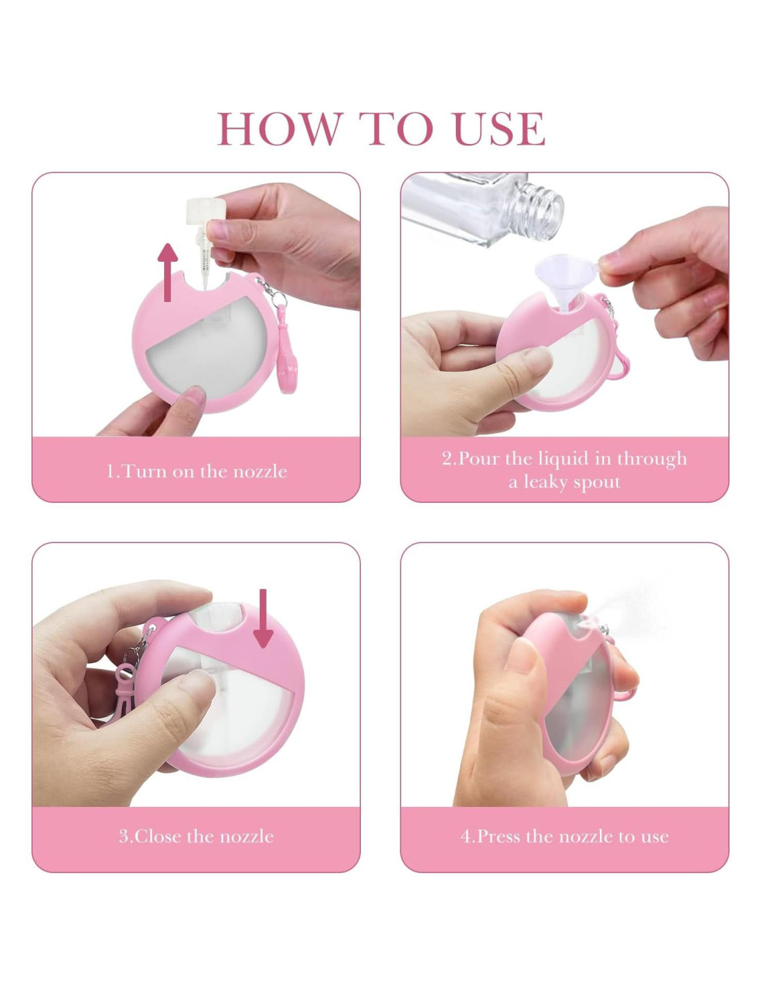 Descripción del Producto Características: -Accesorios de botellas de spray de tamaño de viaje, fáciles de usar y fáciles de llenar. Nota: -Botella de perfume recargable para viaje solamente, otros no están incluidos.