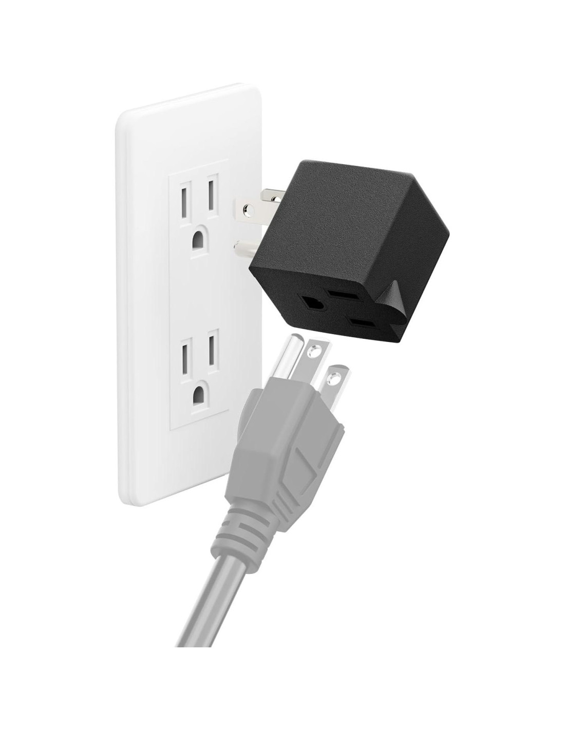 PluGrand SKU#: PA-0170L45 Adaptador Ahorra Espacio de color Negro, adaptador de poder cambiador de dirección AC, diseño moldeado. Nema 5-15P macho USA de 3 patas a hembra USA de 3 patas con ángulo derecho (Ángulo Hacia Abajo) adaptador de poder AC 15AMP 250VOLT. Soporta un máximo de 1870vatios, el cable interno es de 14AWG de cobre.