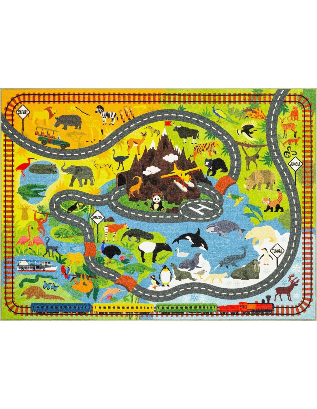 - EXPLORA LA AVENTURA SALVAJE: Lleva a tu hijo en un viaje salvaje a través de la jungla, tundra y sabana con esta colorida alfombra temática de safari. Presenta más de 60 animales y múltiples hábitats - ¡perfecto para el juego imaginativo!