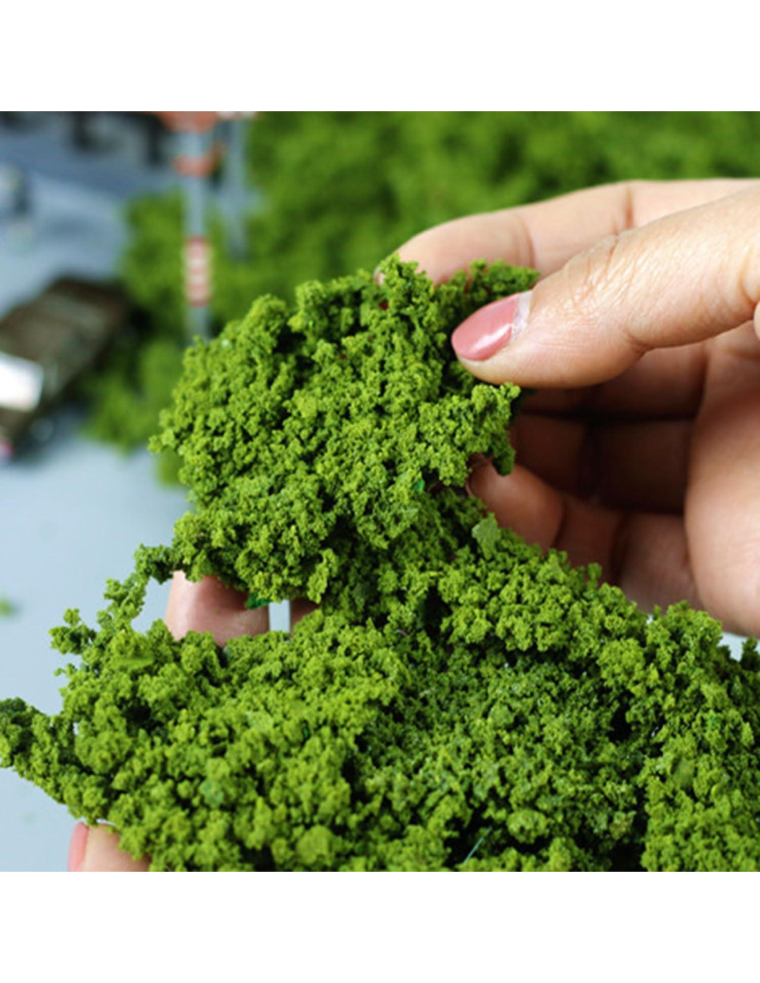 - Amplia Aplicación: Este polvo de árbol podría aplicarse ampliamente como modelo de ferrocarril, diorama, modelo de edificio, diseño de escena o decoraciones de paisaje, etc.