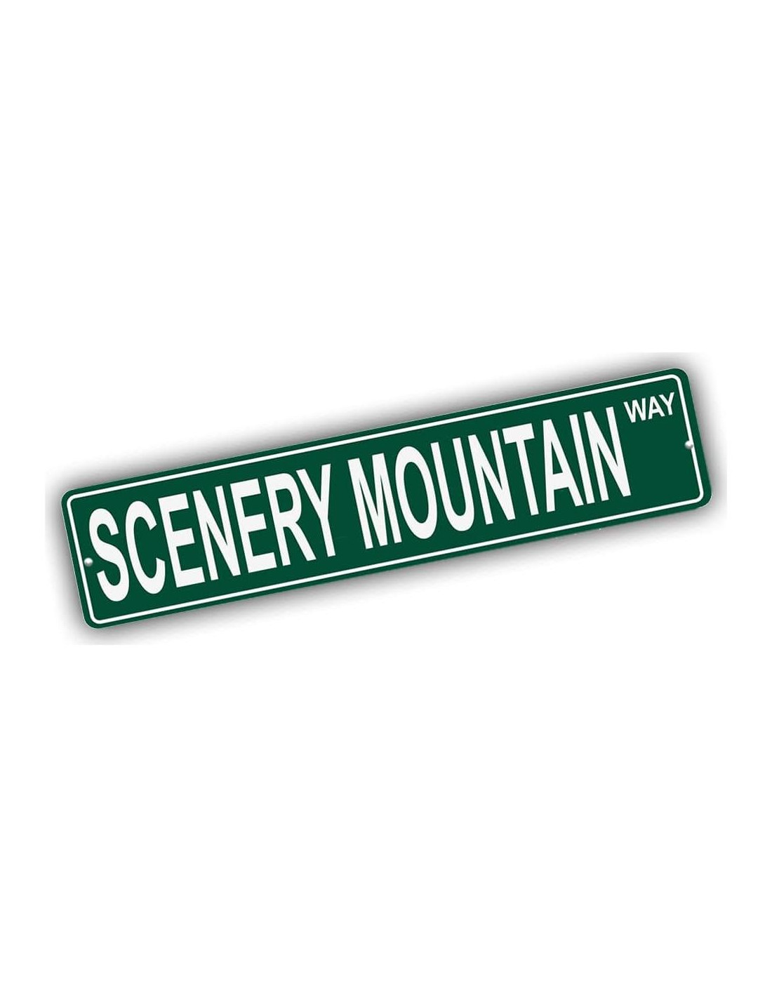 - Reproducción de señal de calle de aluminio, presenta esquinas redondeadas y dos agujeros de montaje en cada extremo.