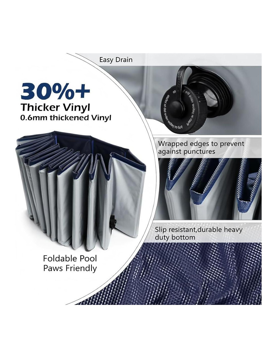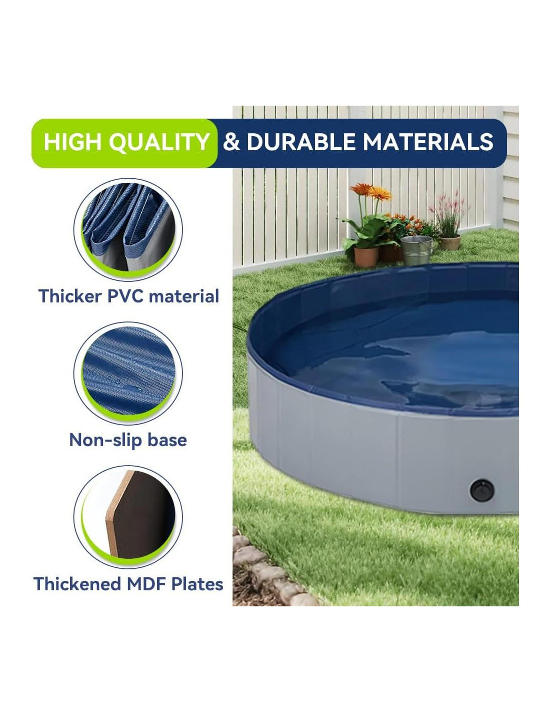 - MATERIAL PVC DURADERO: La piscina para perros está hecha de PVC de alta calidad con MDF grueso incorporado, que puede soportar de manera estable toda la piscina cuando está desplegada y no es fácil de colapsar. El fondo antideslizante evita que tu mascota se resbale al saltar en la tina. (Elige un terreno plano sin objetos afilados para colocar la piscina).