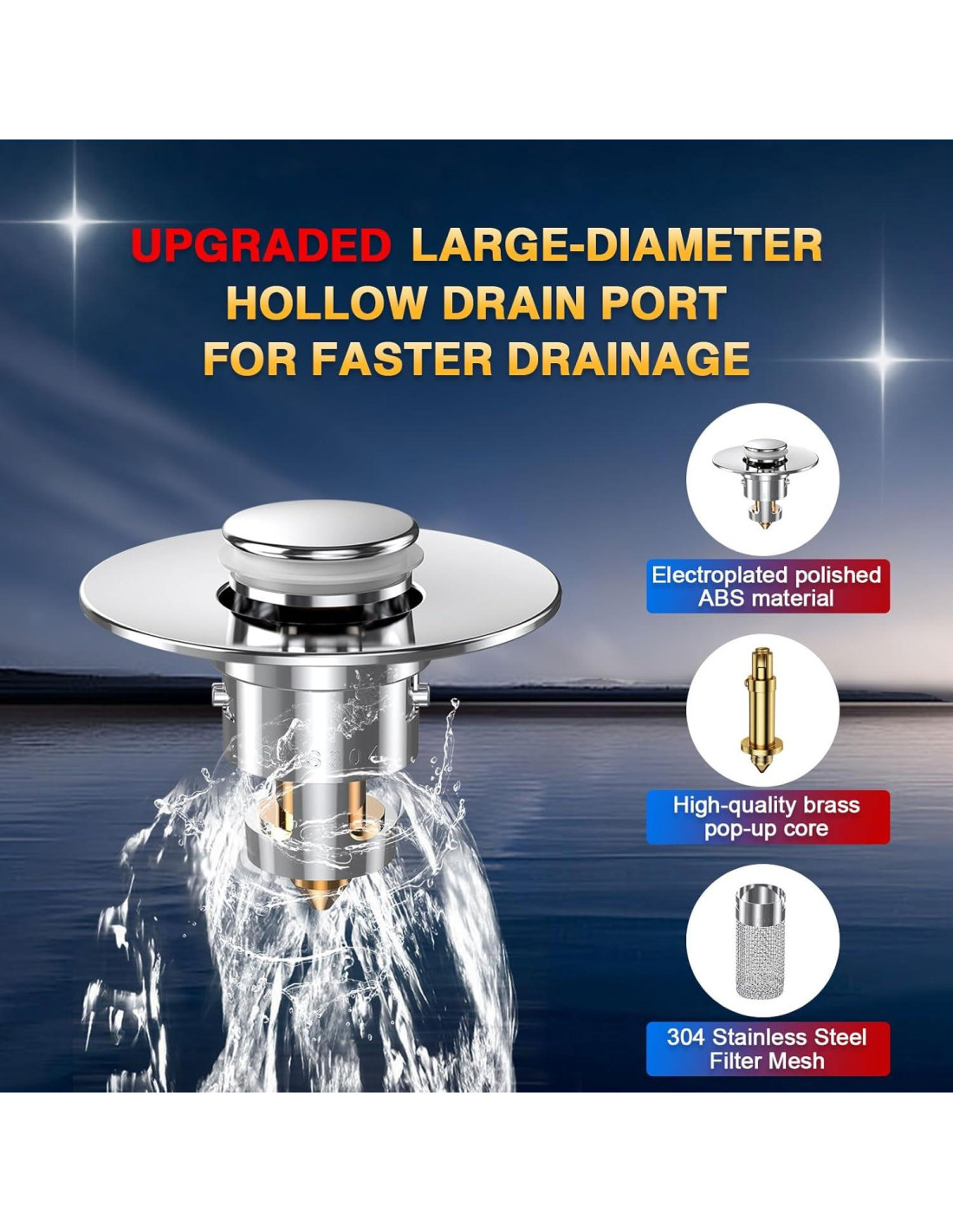 - Diseño emergente: Este tapón de lavabo está diseñado para atrapar el cabello y prevenir obstrucciones en su lavabo de baño. Con un mecanismo emergente fácil de usar, permite abrir y cerrar el desagüe sin esfuerzo. Con un rango de diámetro de 2.79-3.68 centímetros, se adapta a la mayoría de los lavabos de baño de EE. UU. y actúa como un filtro de desagüe efectivo. La construcción de núcleo de latón garantiza durabilidad y un rendimiento duradero, lo que lo convierte en una opción confiable para cualquier lavabo de baño.
