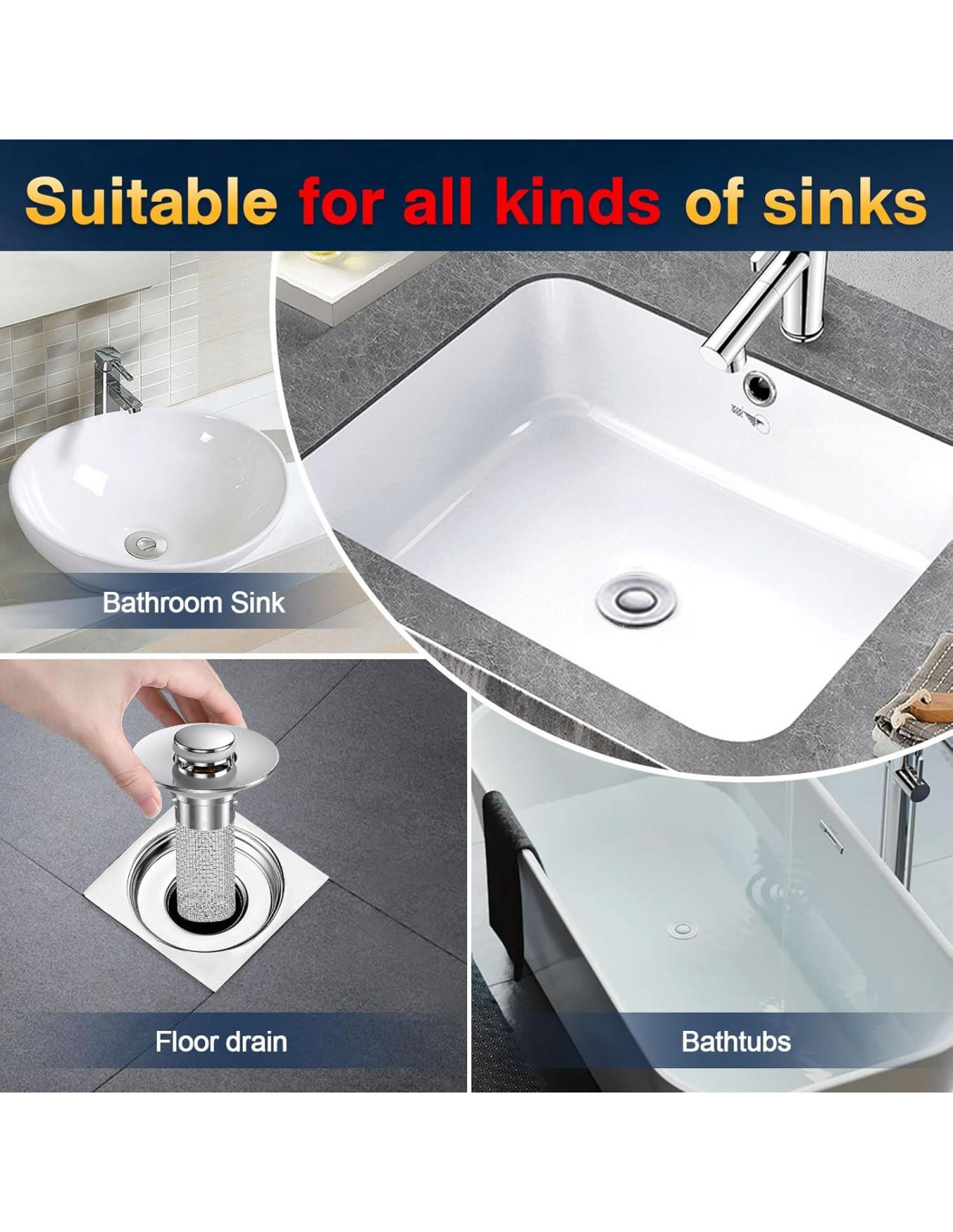- Compatibilidad perfecta: Este colador de desagüe para lavabo de baño está diseñado para adaptarse al 99% de los agujeros de desagüe e incluye un anillo de goma para asegurar un ajuste ceñido para varios tamaños de desagüe. Se adapta a agujeros de desagüe con un rango de diámetro interno de 2.59 a 3.05 centímetros, lo que lo hace altamente versátil para su uso en lavabos, lavabos de baño y bañeras de ducha. Esto asegura un ajuste perfecto y un rendimiento óptimo en una amplia gama de accesorios.
