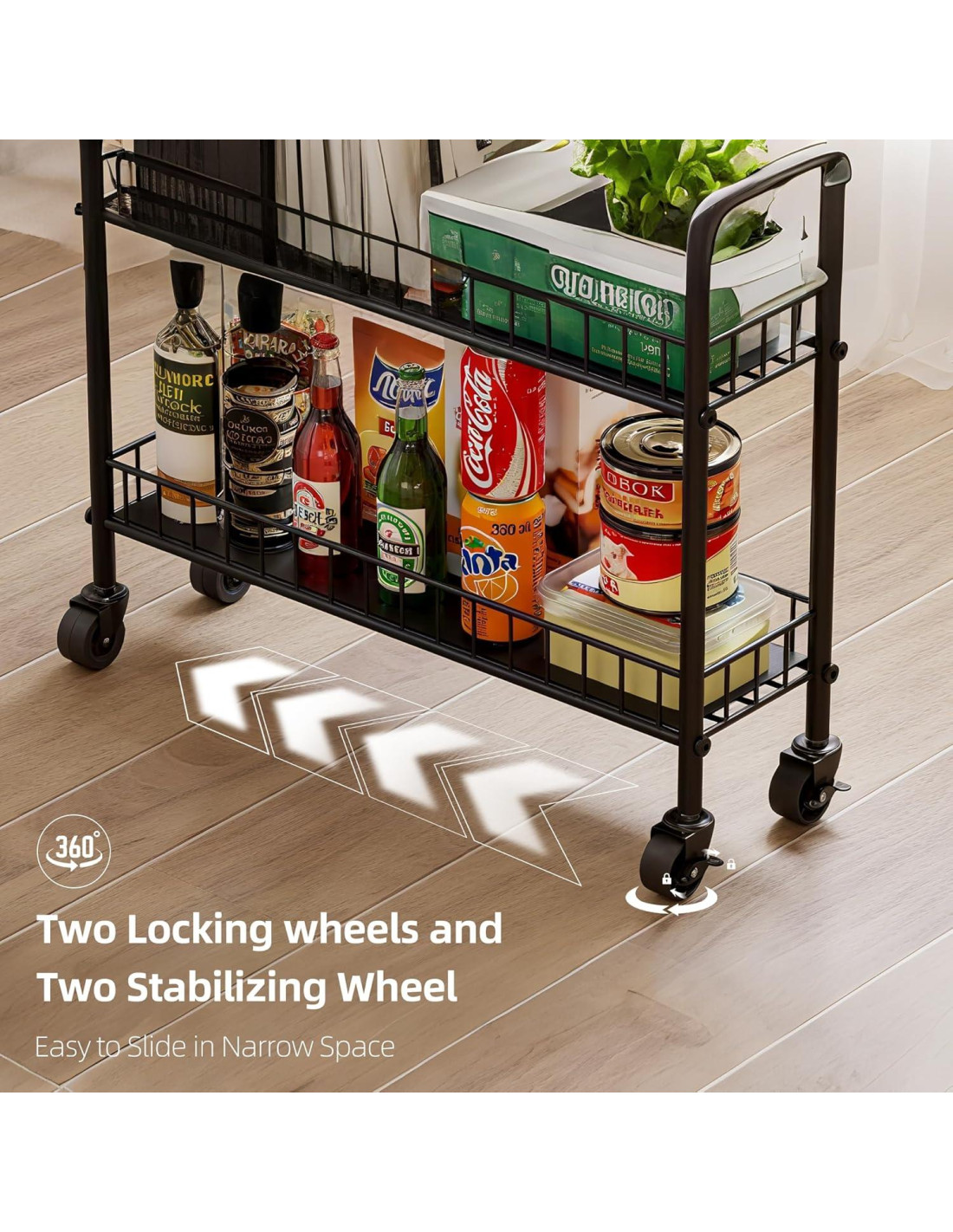 - Fácil de Mover a Cualquier Lugar: Construido con 4 ruedas de deslizamiento suave, este carro de almacenamiento con ruedas se mueve sin esfuerzo sobre baldosas, madera dura o alfombra. Es perfecto para trasladar entre la cocina, el baño, la lavandería o el espacio de vida.