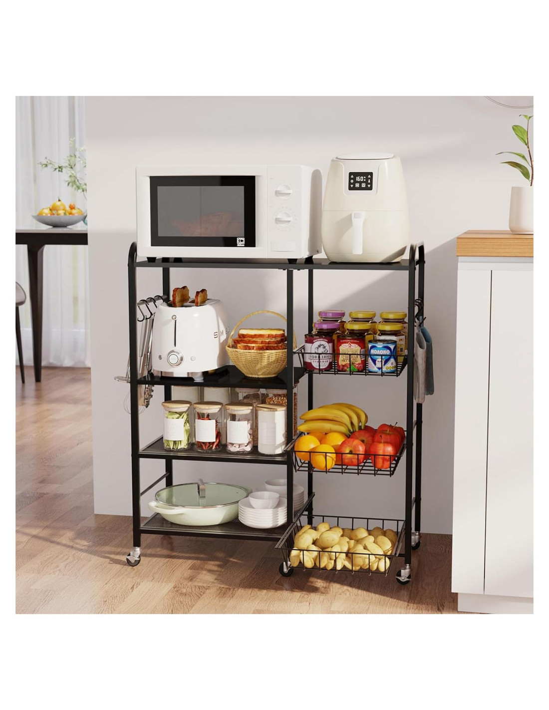 - [Gran Capacidad de Almacenamiento Multi-Nivel]: Este carro de almacenamiento de cocina ofrece múltiples niveles de almacenamiento, incluyendo 4 estantes abiertos y una amplia superficie superior, perfecto para organizar un microondas, tostadora, frutas, especias y otros elementos esenciales de cocina. Este carro de cocina puede ayudarte a organizar fácilmente tu cocina, maximizando el espacio y proporcionando acceso rápido a tus artículos.