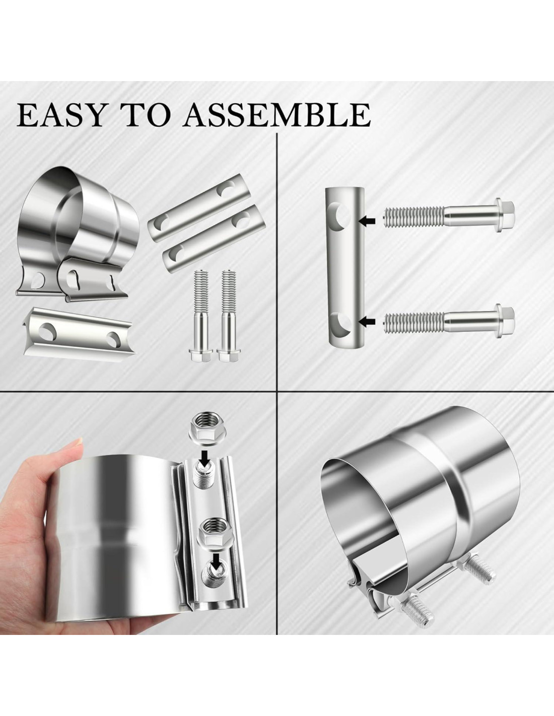 - Abrazadera de banda de doble cabeza de diámetro: Recibirá 1 abrazadera para conectar tubos de 2.25 pulgadas de diámetro exterior a tubos de 2.25 pulgadas de diámetro interior. La abrazadera de reparación de tubos es adecuada para conectar tubos, silenciadores, convertidores catalíticos y más del kit del sistema de escape