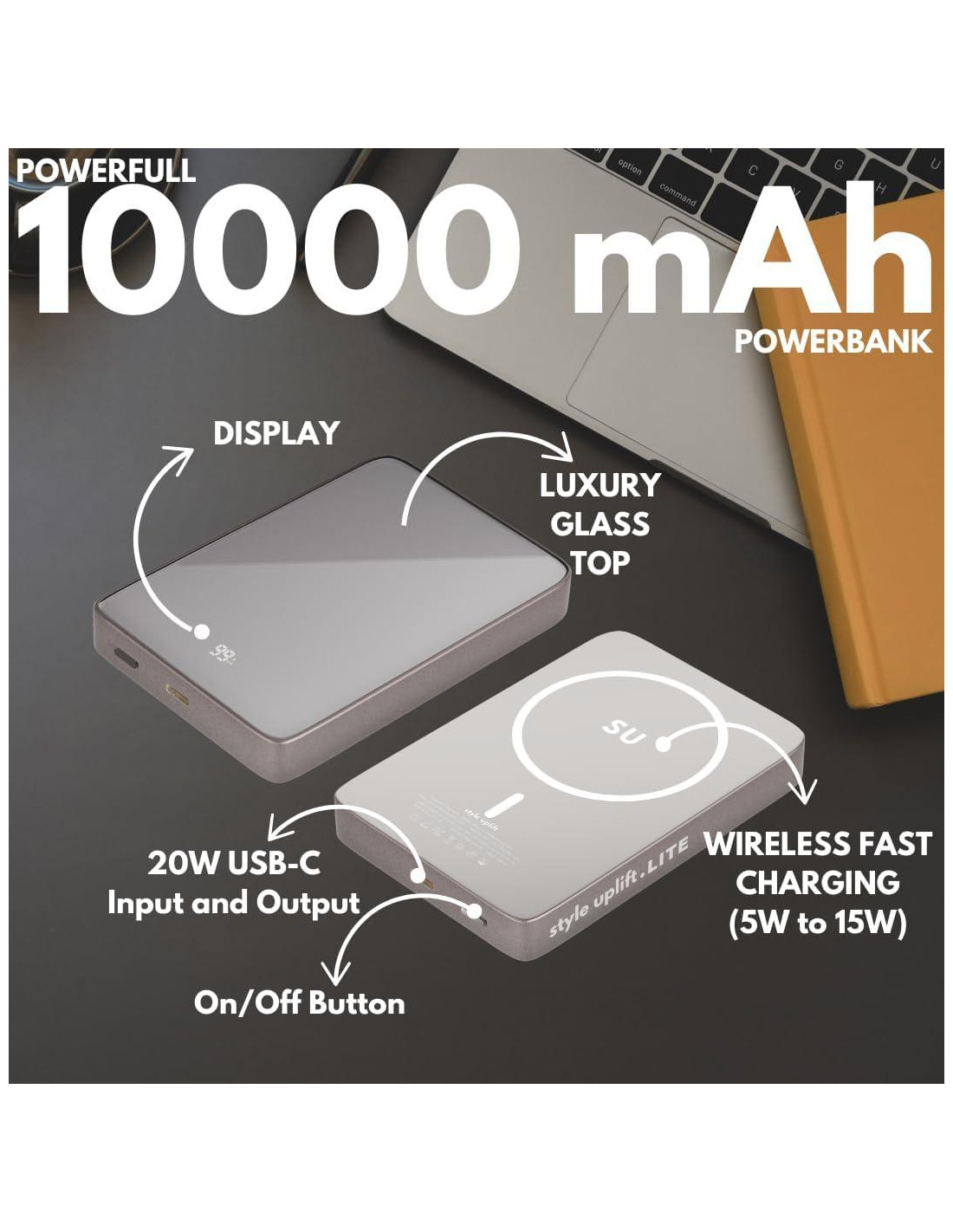 - Eleva tu experiencia de carga con Style Uplift, una perfecta combinación de elegancia, funcionalidad y tecnología de vanguardia. Mantente cargado en cualquier momento y lugar con nuestra batería externa ligera, elegante y confiable.