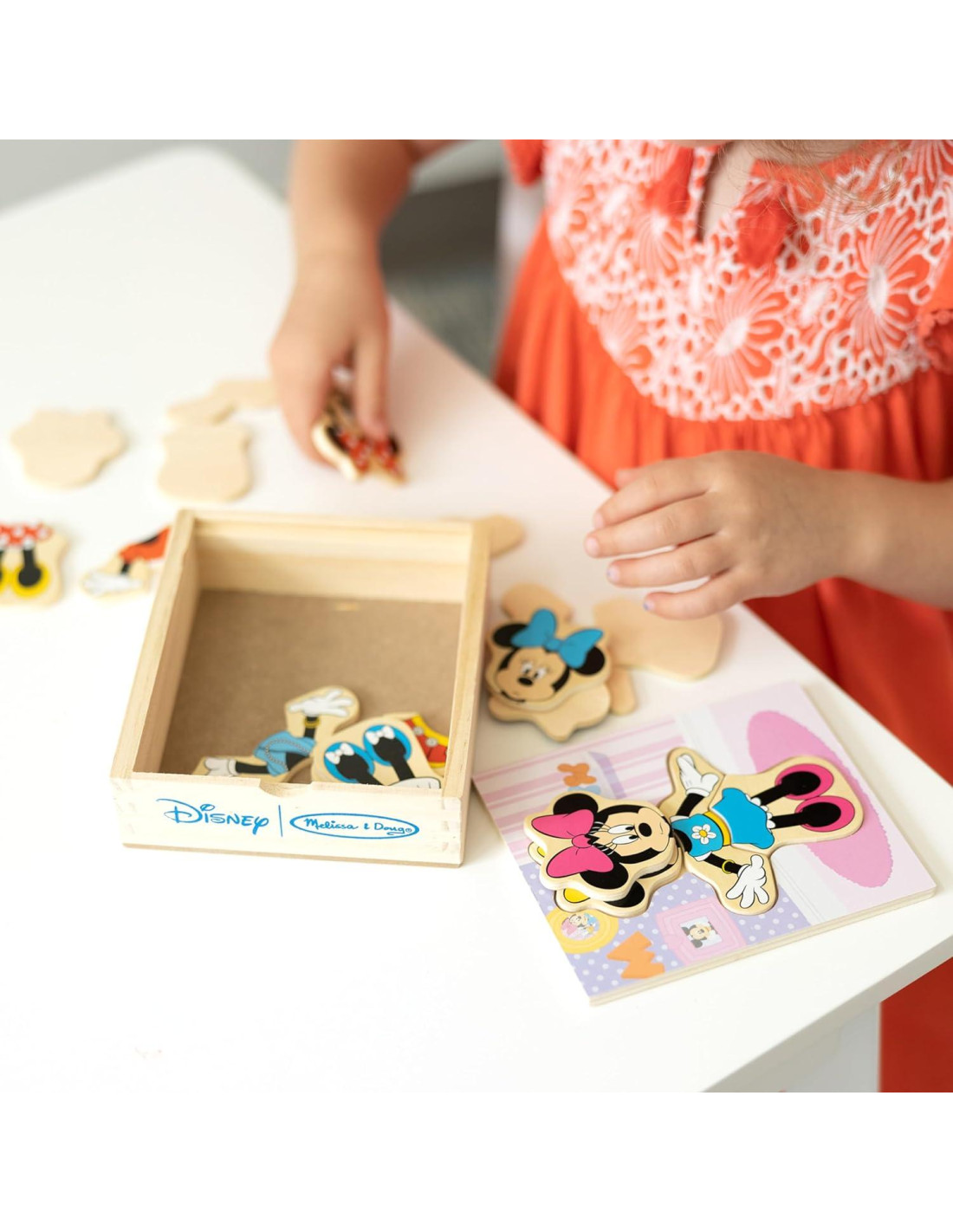 Descripción del Producto Mezcla y combina 18 piezas de madera para crear tu propia historia de moda con Minnie Mouse de Disney. Elige una falda, una blusa e incluso el estado de ánimo de Minnie para infinitas combinaciones. Las piezas del rompecabezas encajan en una escena en la tapa de la caja de almacenamiento de madera. Todas las piezas se almacenan en la caja. Este rompecabezas único de vestir ayuda a los niños de tres años en adelante a desarrollar la coordinación mano-ojo y habilidades motoras finas, conteo y clasificación, y fomenta la expresión creativa y el juego imaginativo. Historia de la Marca Por Melissa & Doug Desde juguetes de madera clásicos hasta manualidades, juegos de simulación y juegos, los productos de Melissa & Doug proporcionan una plataforma para encender la imaginación y un sentido de asombro en todos los niños para que puedan descubrirse a sí mismos, sus pasiones y su propósito. Desde la fundación de la empresa hace más de 25 años, Melissa & Doug ha entregado consistentemente productos innovadores que inspiran el pensamiento abierto, alientan a los niños a ver nuevas posibilidades y ofrecen Incontables Maneras de Jugar. Es parte de una visión más grande para Recuperar la Infancia. Porque al dar a los niños una verdadera infancia con el espacio y la libertad para explorar su mundo, les damos un camino para realizar su máximo potencial. Ver más