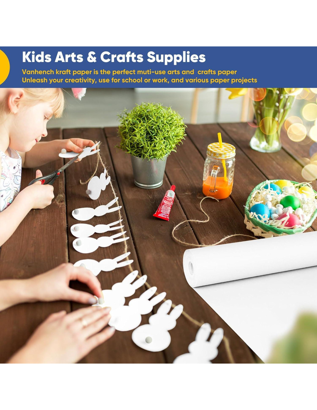 - Diversión para Toda la Familia. Nuestro rollo de papel blanco también es ideal para mantenerlo a usted y a sus hijos entretenidos y es excelente para crear hermosos ramos o arte mural DIY. Déjelos expresar su creatividad en un gran lienzo y manténgalos entretenidos durante horas, añadiendo un toque de elegancia a su proyecto de manualidades o decoración. Las posibilidades son infinitas mientras trabajan juntos para crear arte mural colorido, tarjetas hechas a mano o manualidades personalizadas con nuestro papel de dibujo a su disposición.