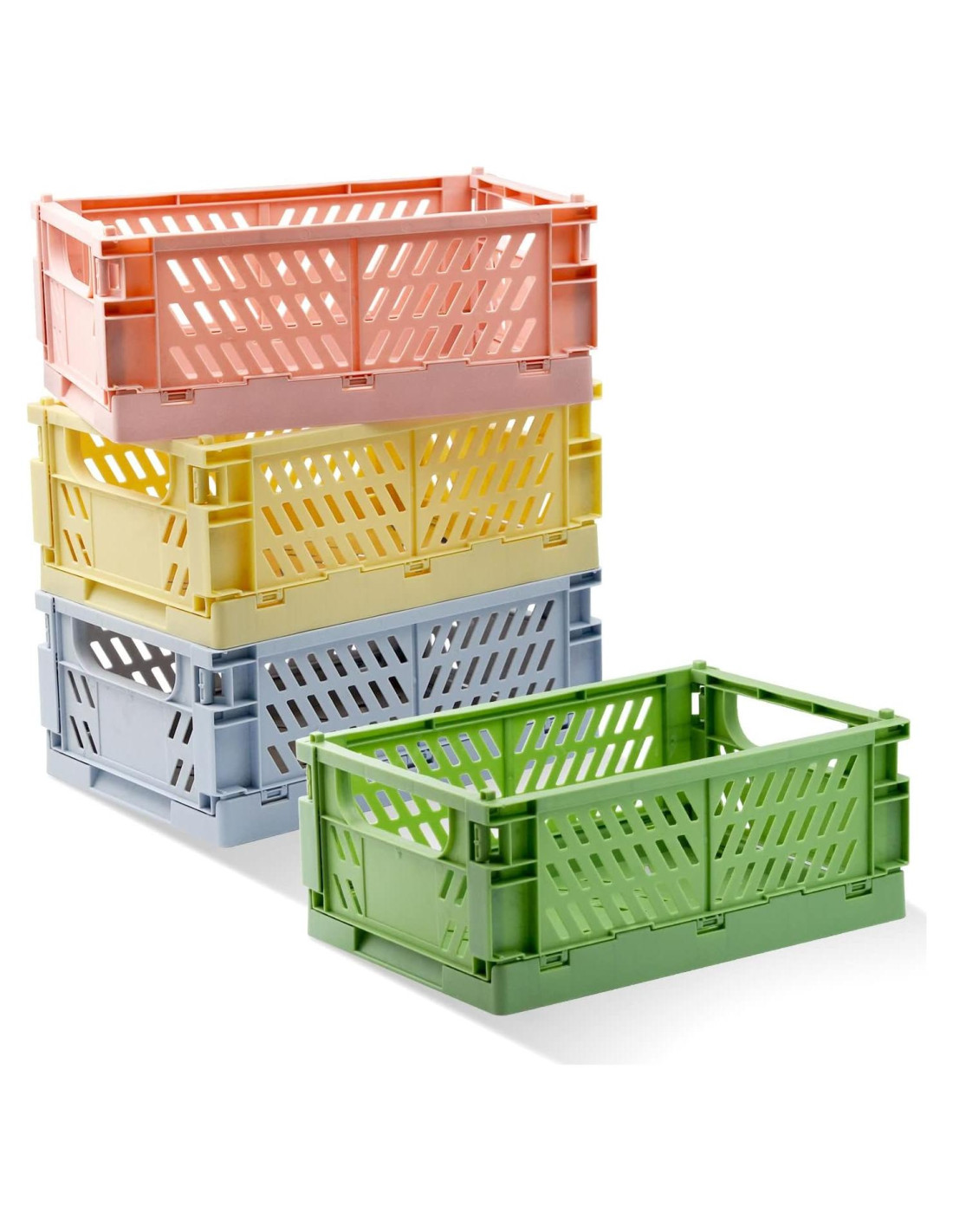- [Tamaño de Cajas Pastel] 4pcs canasta plástica pastel, 4 colores diferentes: rosa, verde, crema y azul claro; Tamaño expandido: 24.9*16.5*9.7 cm, tamaño plegado: 24.9*16.5*2.5 cm. Consejo: ¡Por favor, lea el tamaño del artículo cuidadosamente antes de comprar!