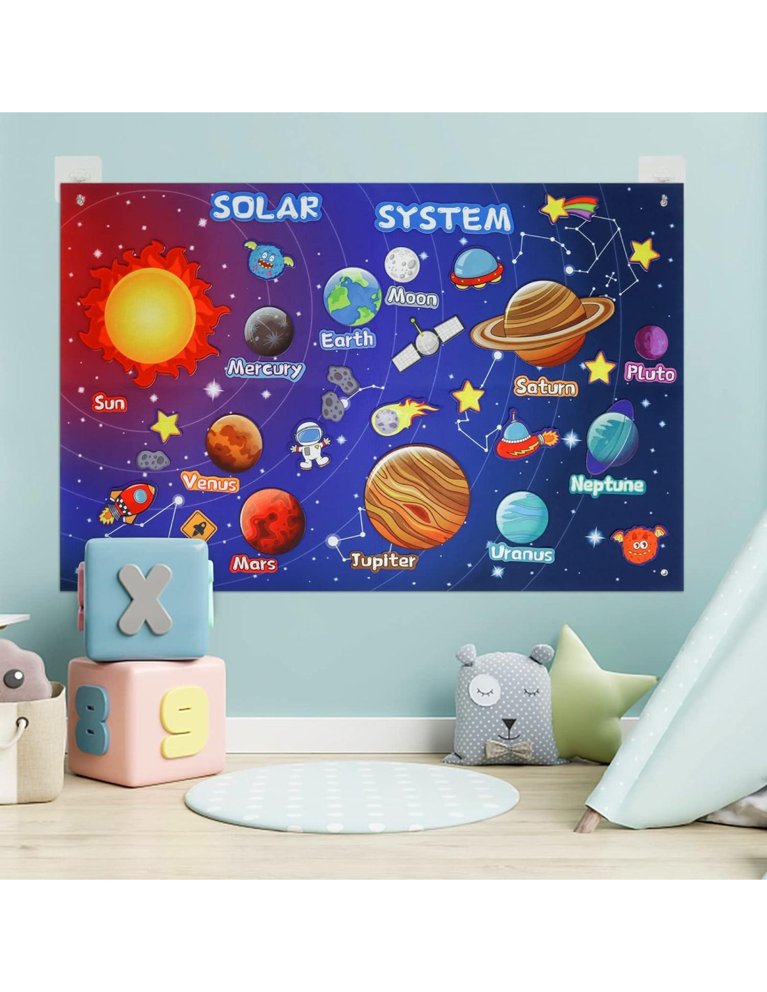 - APRENDIZAJE EDUCATIVO: Los niños pueden aprender conocimientos espaciales científicamente a través de este conjunto de tablero de historia de fieltro del sistema solar, puede ejercitar la imaginación y la habilidad manual de los niños. Gran kit de enseñanza Montessori para educación preescolar, tiempo interactivo y narración de historias