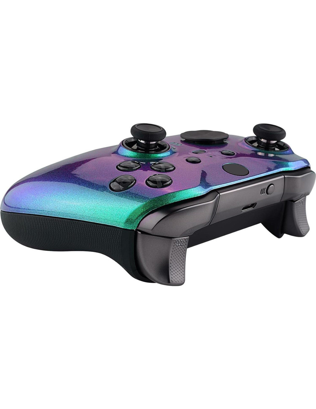 Personaliza tu controlador de juego para Elite Series 2 Core con los accesorios de reemplazo eXtremeRate. Sabemos que la carcasa de tu controlador es más que un simple accesorio de plástico. Es tu compañero, tu aliado, tu amigo de batalla. Por eso usamos solo las mejores piezas y las pinturas más vibrantes para asegurar que nuestros controladores sean de alta calidad. Créeme, tu amigo te admirará después de instalar esta exclusiva carcasa frontal. Este producto no es compatible con otros modelos de controladores. Esta es solo una carcasa frontal con anillos de acento para el controlador Xbox One Elite Series 2. El controlador, la carcasa inferior, los botones y otras partes no están incluidas. Se requiere que los clientes desarmen el controlador para reemplazar su carcasa original; se requiere que los clientes sean hábiles con la instalación del controlador. Obtén la guía de video de instalación en Youtube. Por favor, instala el anillo de acento, el kit de indicador de ranuras de perfil y el kit de indicador de carga en la carcasa frontal antes de reemplazar la carcasa original. Hecho de plástico ABS no tóxico y duradero. Sin olor. Se ajusta completamente en todos los lados; se asienta correctamente en todos los clips. Personaliza tu controlador Elite Series 2. Es un hermoso cambio de un aburrido negro normal sin gastar una fortuna. 1* Carcasa frontal 1* Herramienta para abrir la carcasa 2* Anillos de acento 13 en 1 Juego de Joysticks 4 en 1 Paddles Paddles de D-pad de acero 6 en 1 Paddles 6 en 1 Joysticks Metálicos Calcomanías LED Funda de Silicona Carcasa de Reemplazo Carcasa de Reemplazo Carcasa de Reemplazo Carcasa Inferior de Reemplazo Kit de Mejora de Paddles Botones de Reemplazo Botones ABXY