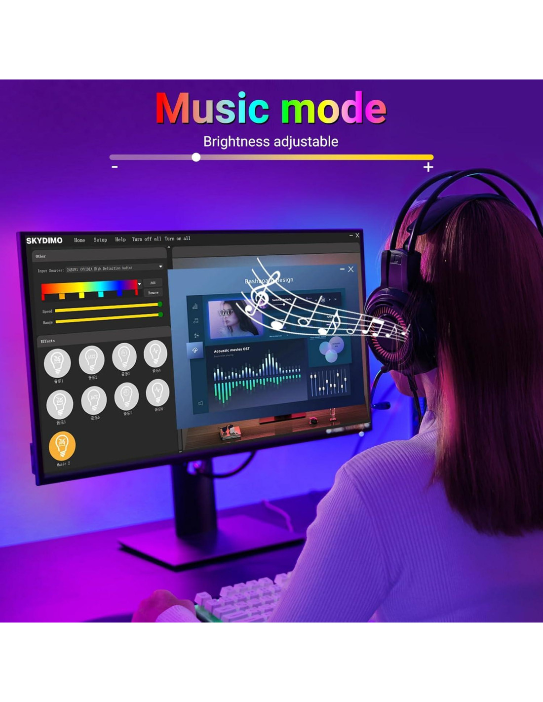 - Luces LED de tira sincronizadas: Esta luz LED RGB puede cambiar colores instantáneamente de acuerdo con el contenido en pantalla como películas, juegos, música con sincronización en tiempo real, creando una experiencia inmersiva.