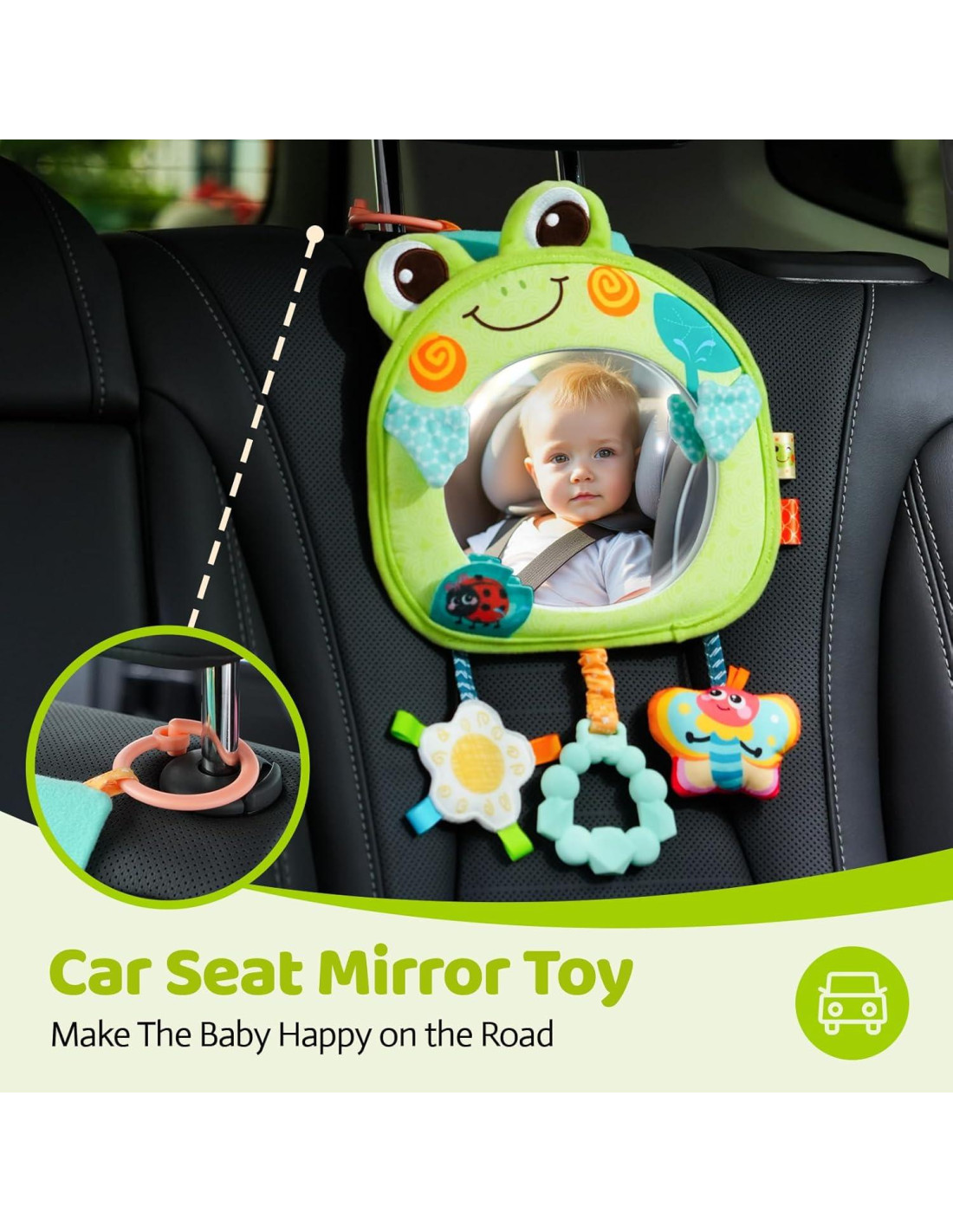 - Estabilidad Sin Sacudidas: Con hebillas dobles antideslizantes que mantienen el juguete espejo firmemente en cualquier reposacabezas. No se necesitan herramientas - solo engancha, ajusta y conduce sin preocupaciones. Es un gran juguete de viaje para viajes por carretera.