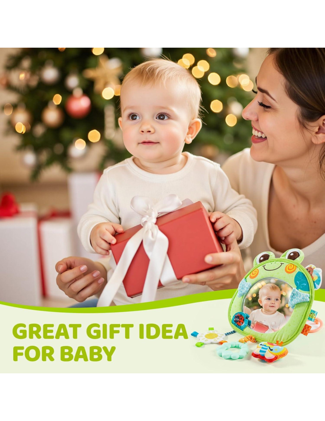 - Juguete Sensorial en Movimiento: ¡Mejora tu configuración de juguetes colgantes para cuna y cochecito! Nuestro espejo incluye 3 divertidos juguetes sensoriales para mantener las manitas ocupadas y fomentar el desarrollo sensorial. Las texturas suaves fomentan el alcance, la captura y el crecimiento cognitivo durante el tiempo de juego. Ideal para bebés inquietos durante largos viajes por carretera.