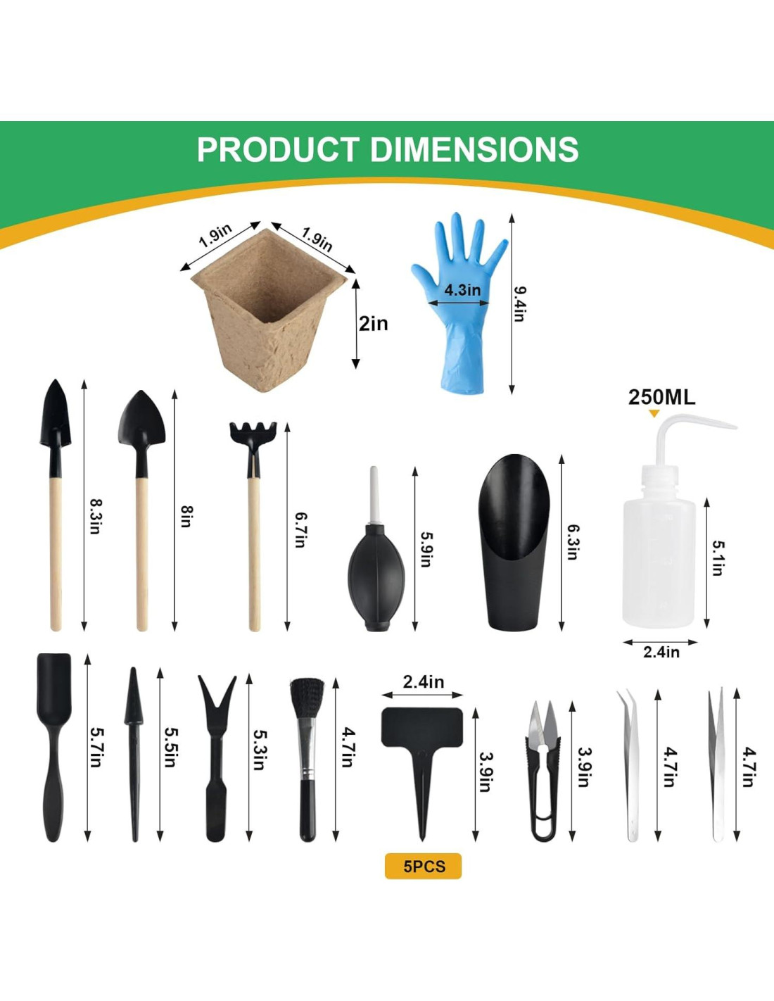 - Exquisita Artesanía: Nuestro juego de herramientas para jardín de suculentas asegura alta calidad y durabilidad. Estas bandejas de plántulas de turba son completamente biodegradables, lo que las convierte en una opción ecológica. La cabeza de la pala, la espátula y el rastrillo están hechas de hierro lacado sólido, el mango está hecho de madera de alta calidad, y las tijeras y pinzas están hechas de acero inoxidable, que es a prueba de óxido y duradero