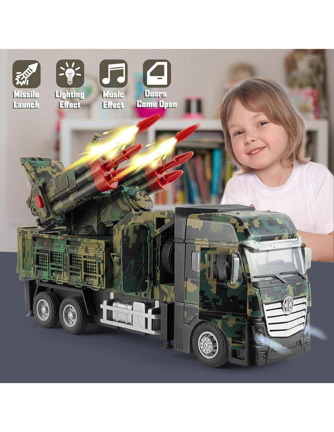 - 5. Regalos Perfectos para Niños: Este juguete de vehículos de misiles del ejército es adecuado para niños mayores de 6 a 8 años como regalos de cumpleaños, vacaciones, Día del Niño, Navidad, Halloween, Día del Niño y regalos de Acción de Gracias.