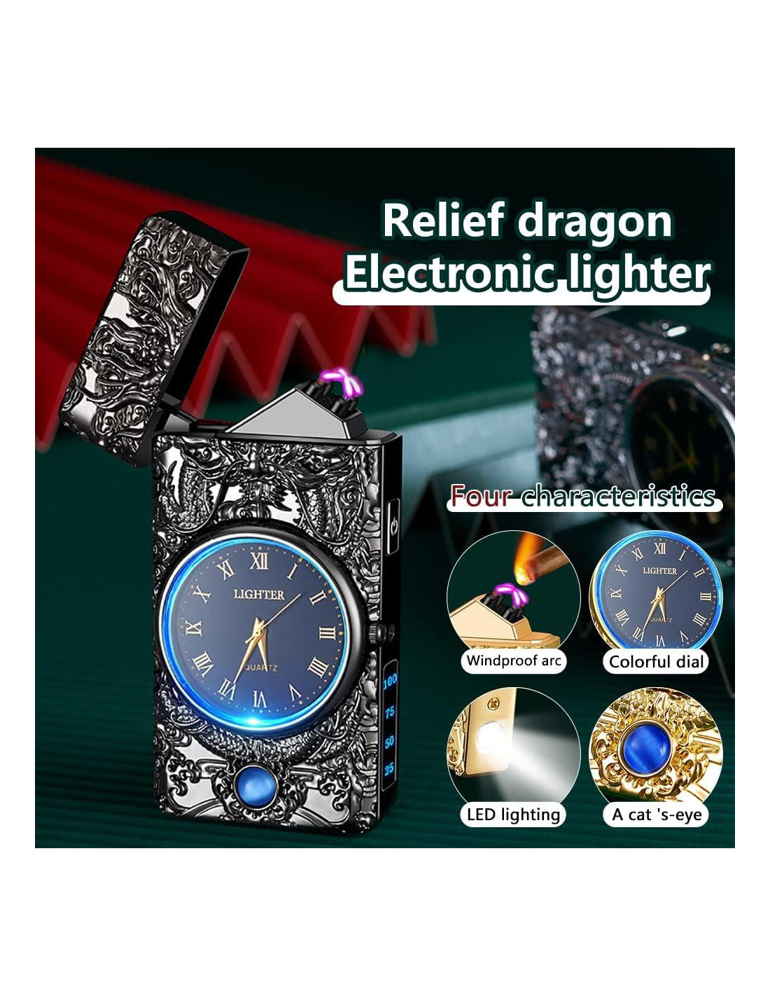 - [Diseño Exquisito] : La apariencia de este encendedor está grabada con un relieve exquisito, reloj deslumbrante, luz LED, piedra de ojo de gato azul, apariencia noble y lujosa que es más llamativa, iluminación en la parte inferior, sin miedo a la oscuridad.